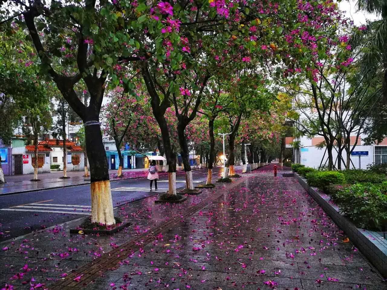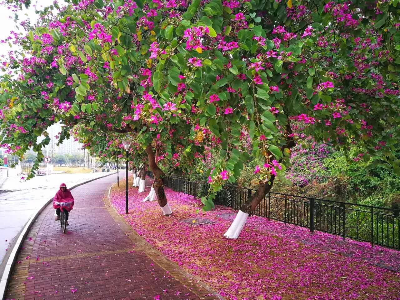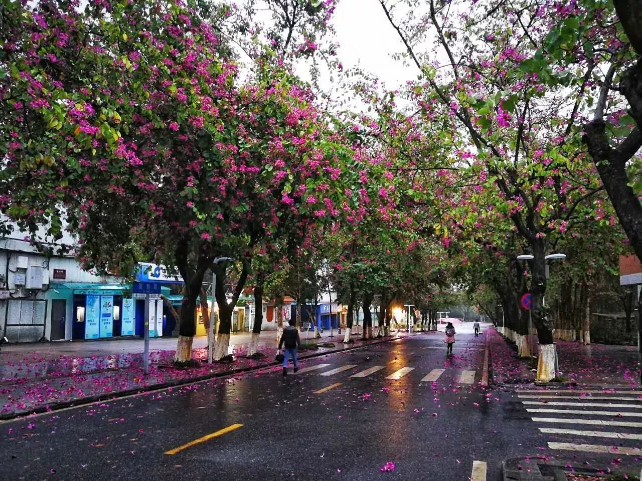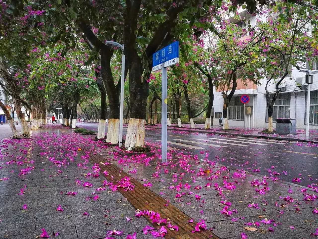 都洒满了紫荆花,