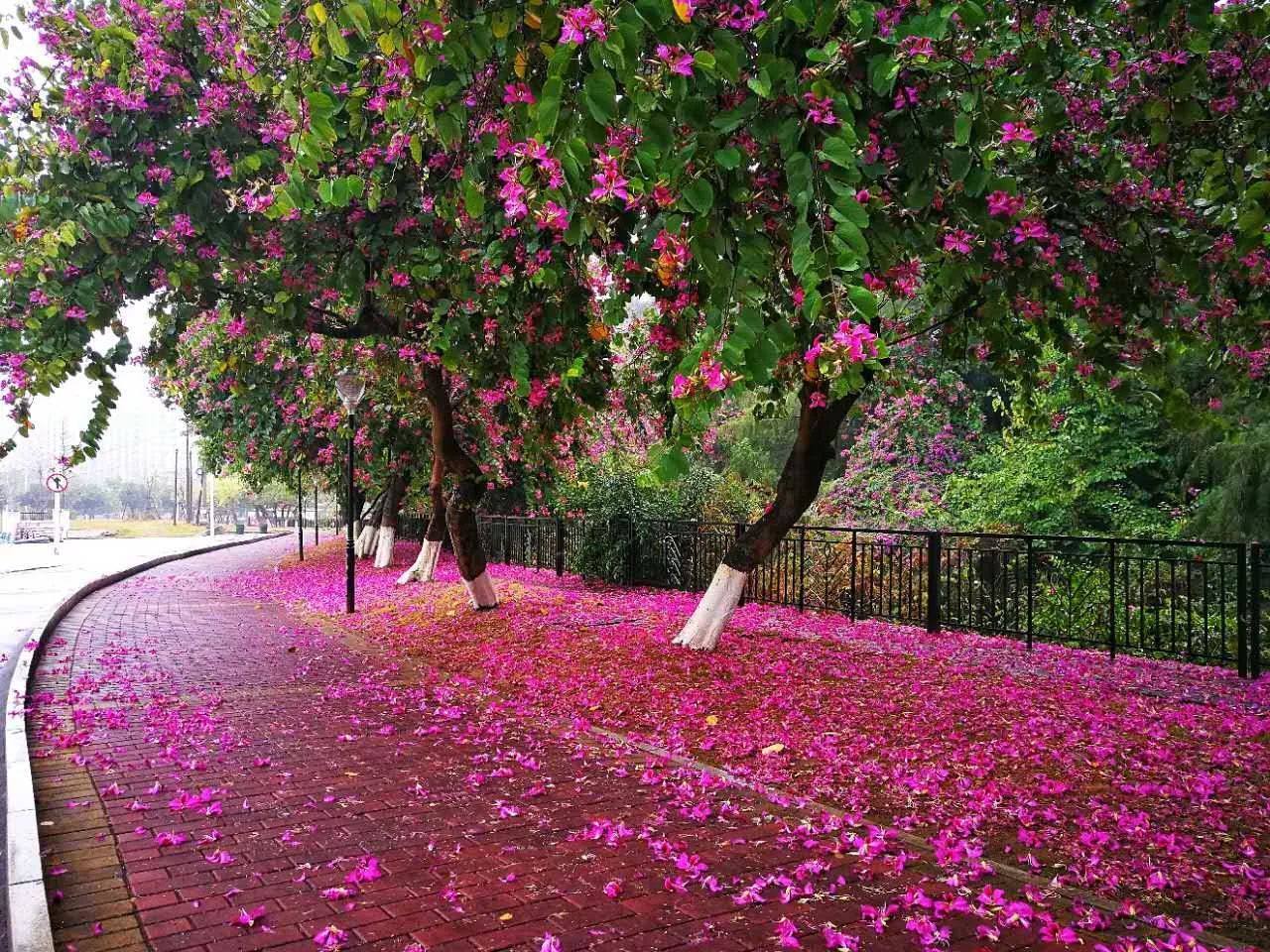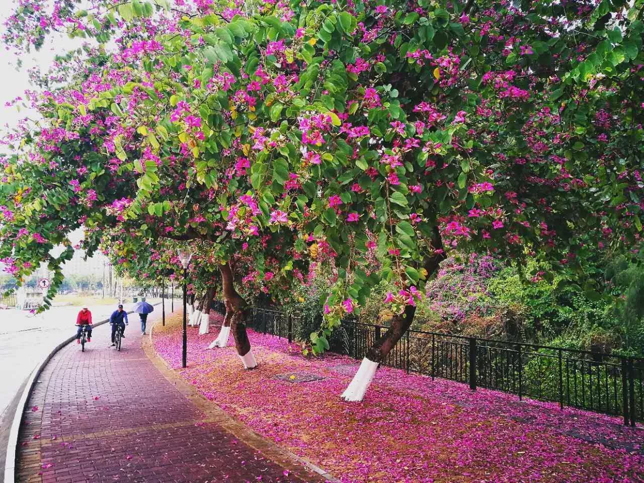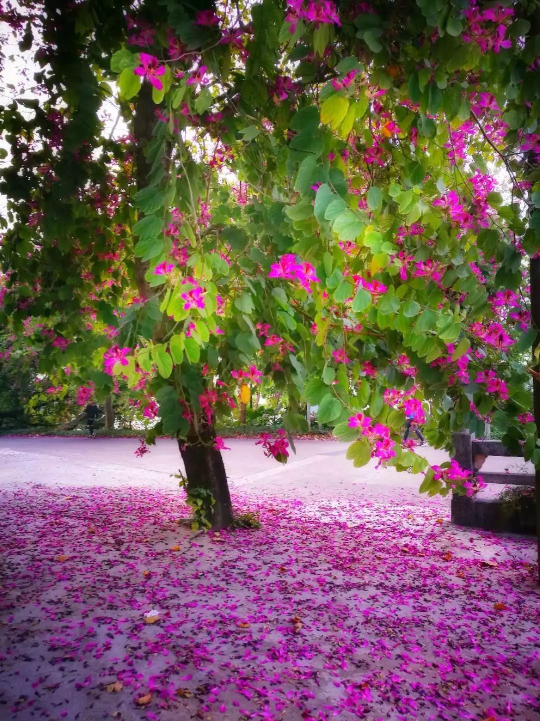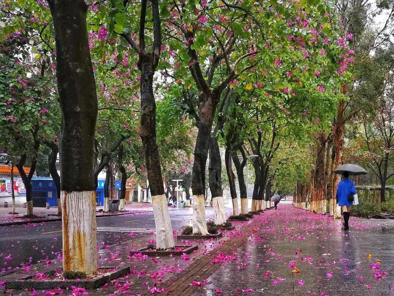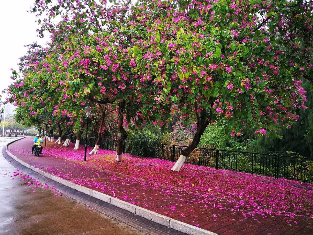 都洒满了紫荆花,