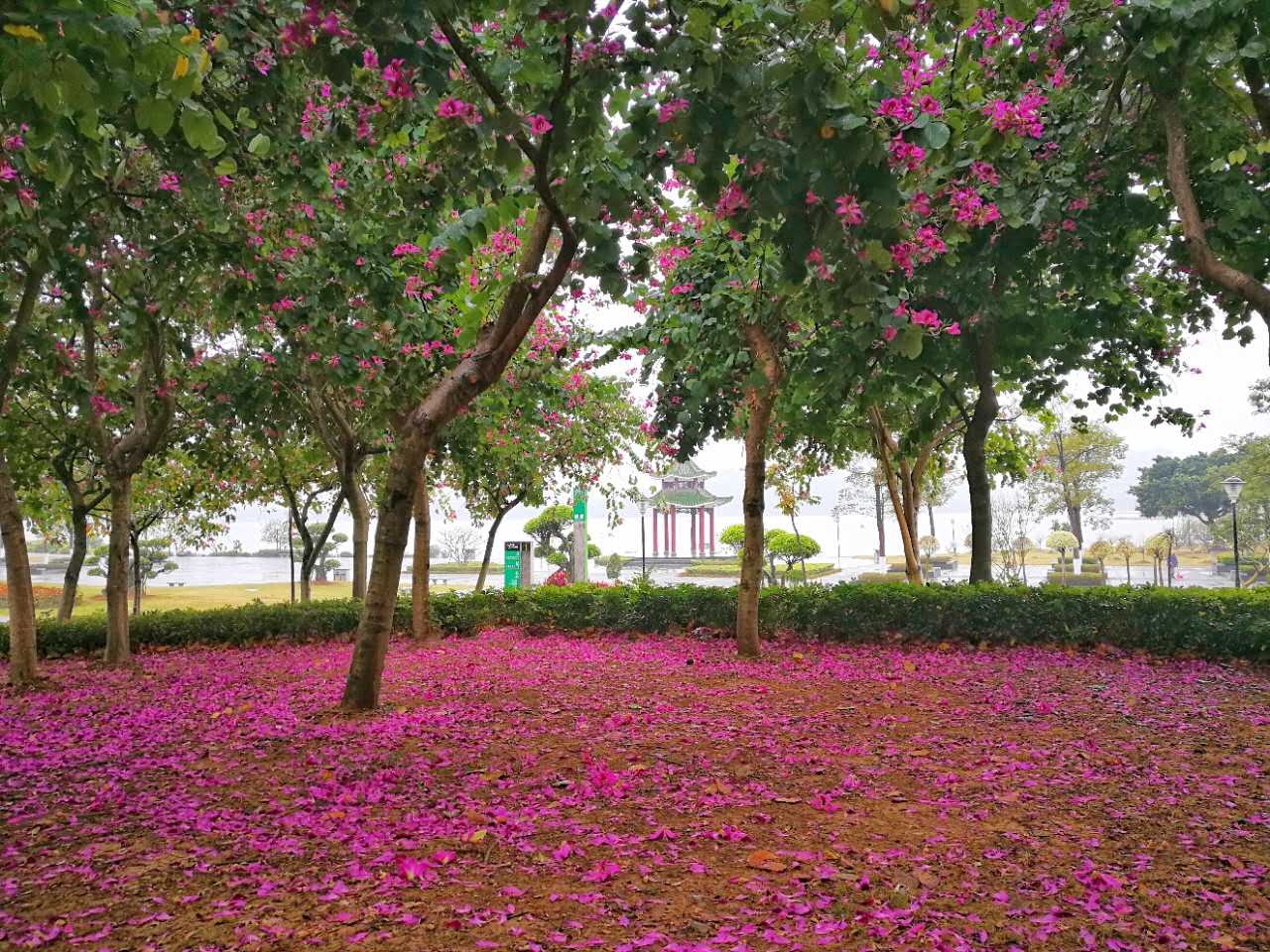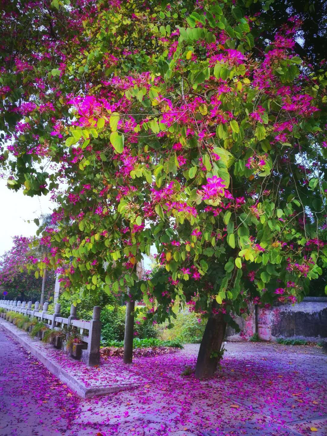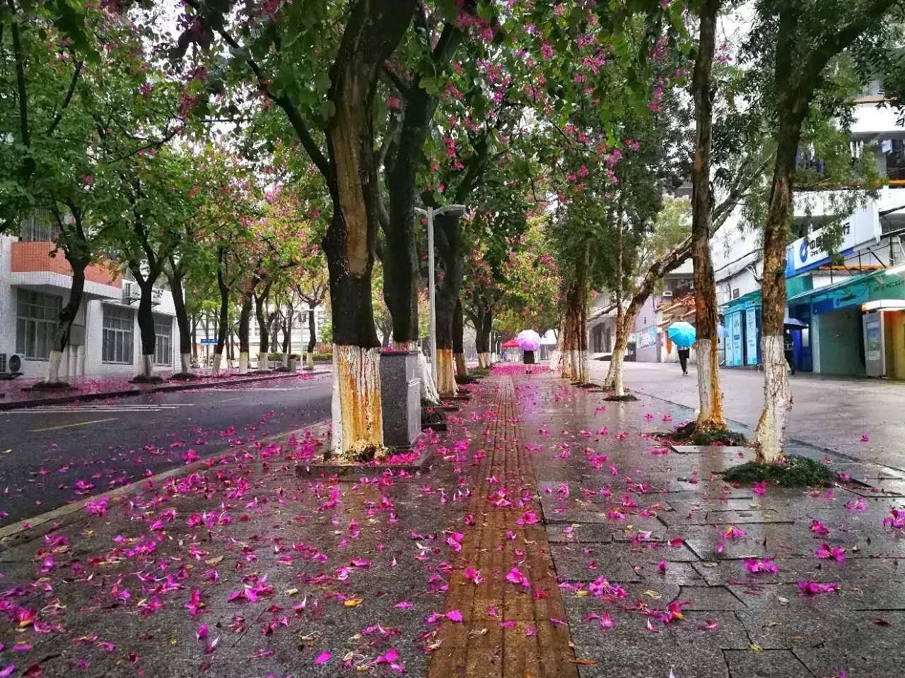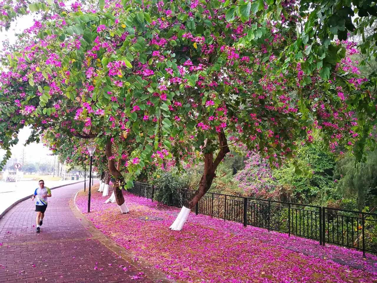 都洒满了紫荆花,