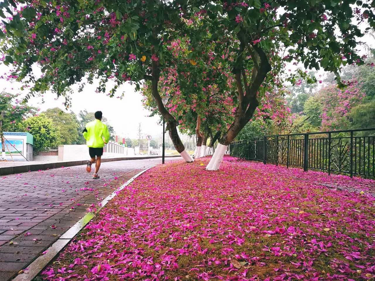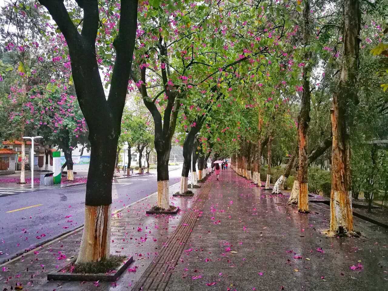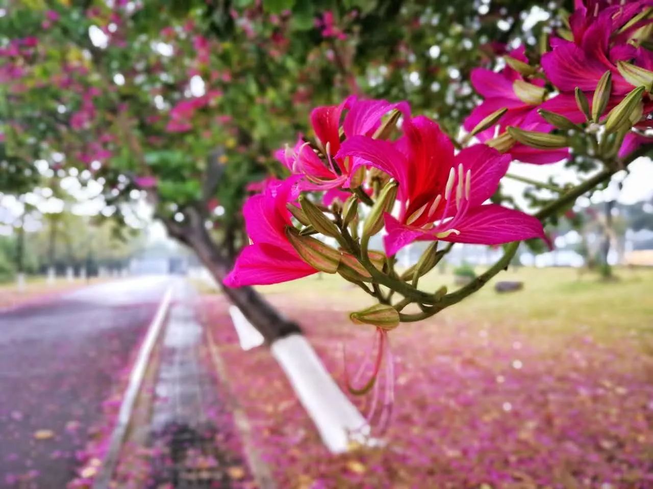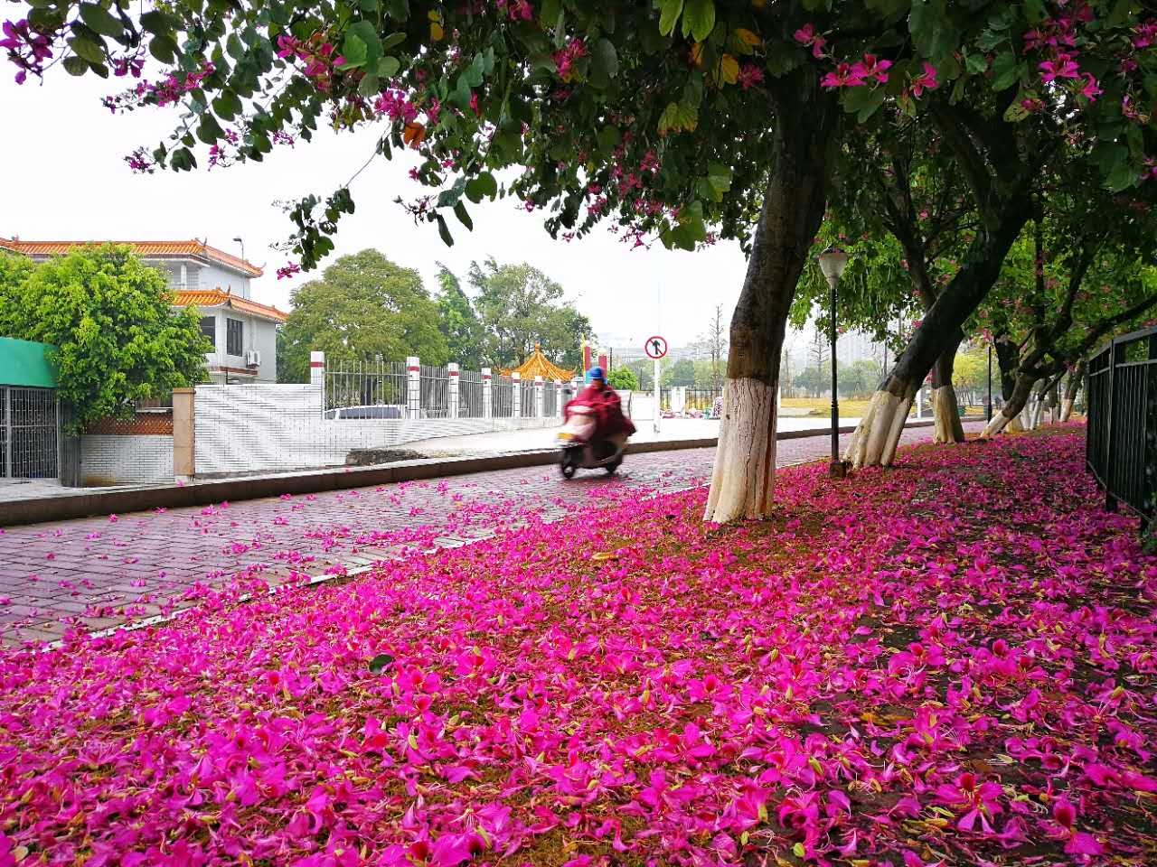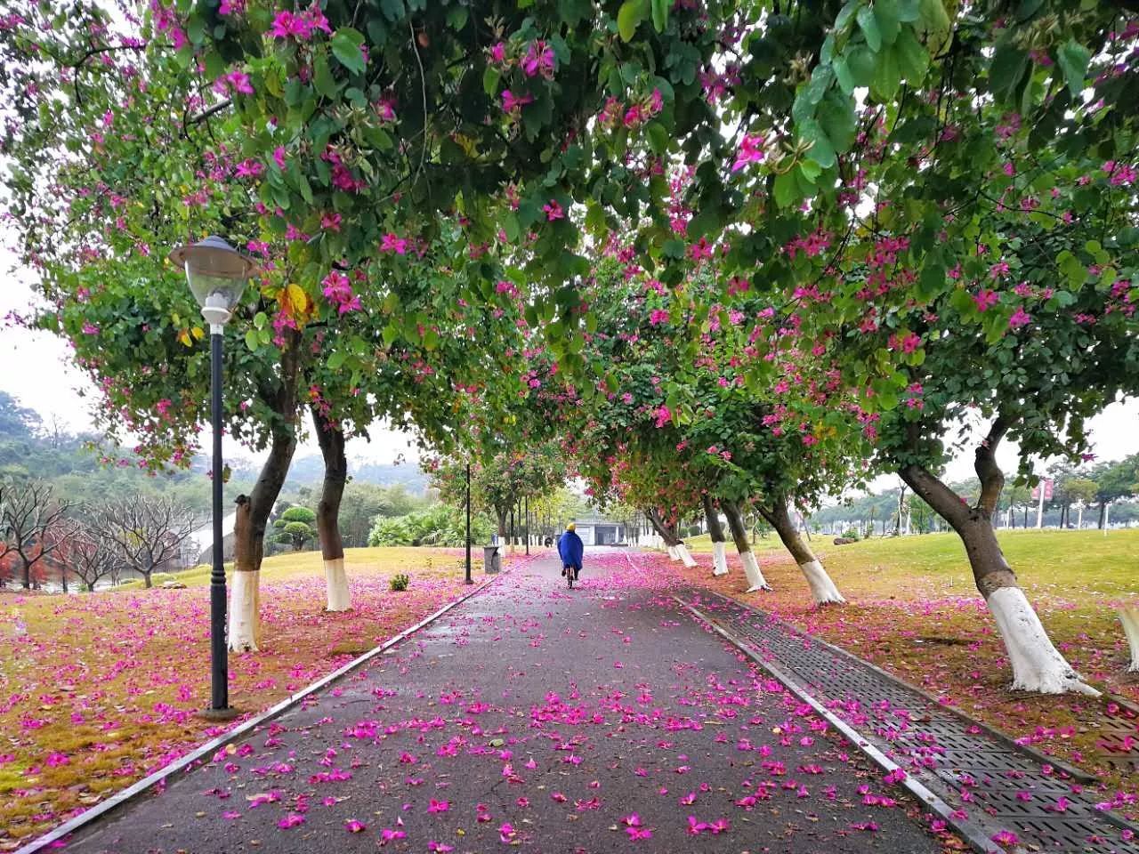 发现紫荆大道的花儿被环卫阿姨扫了一些