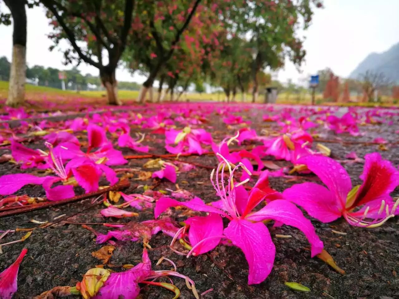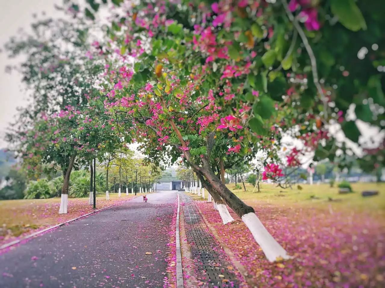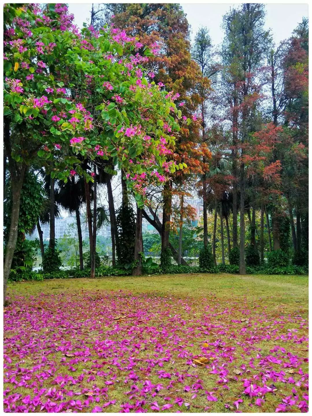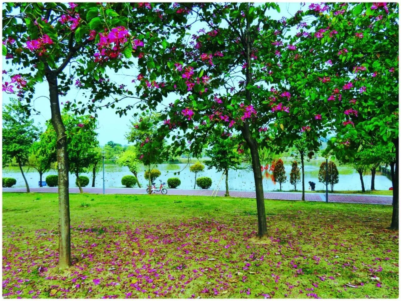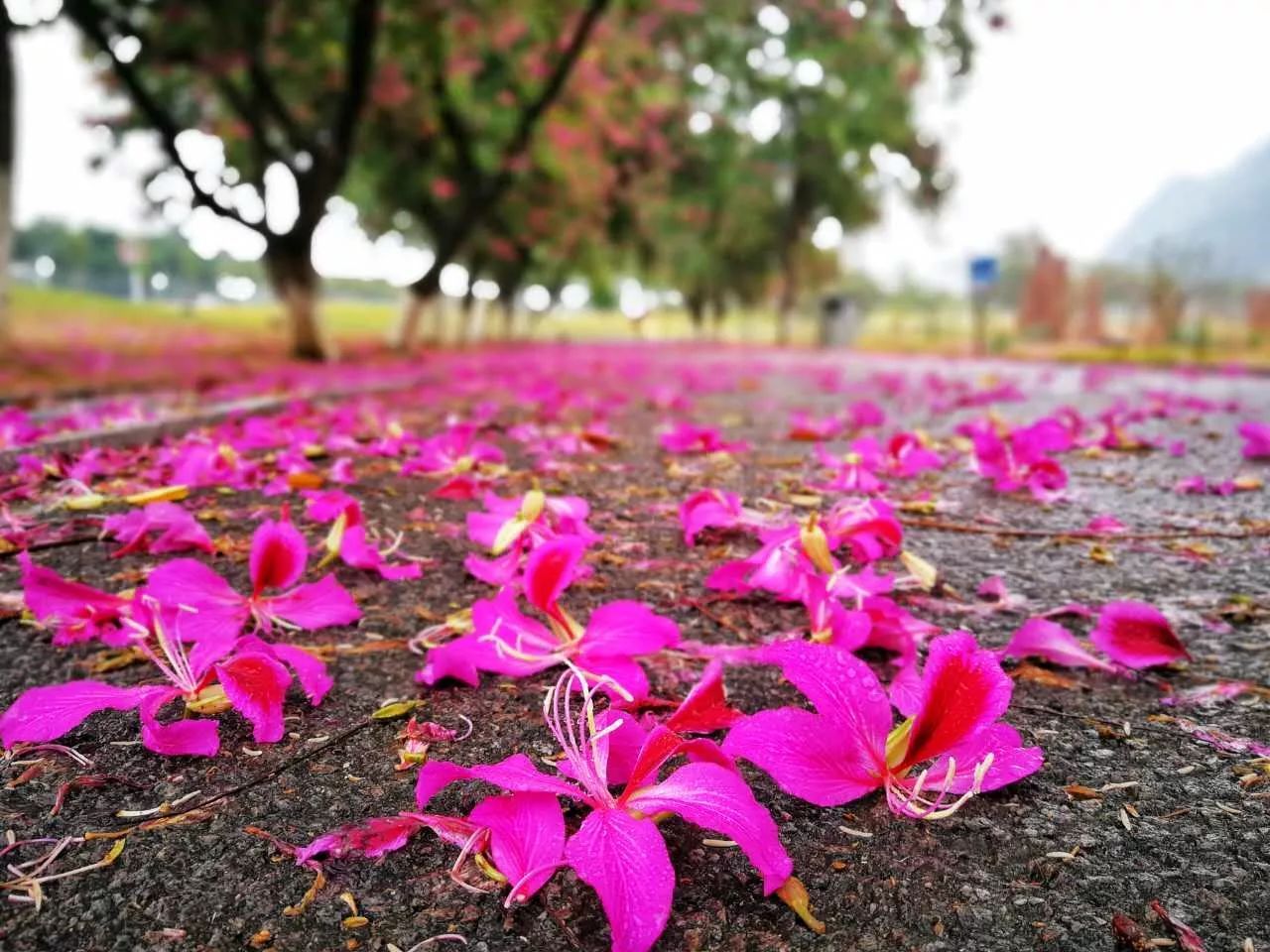 发现紫荆大道的花儿被环卫阿姨扫了一些