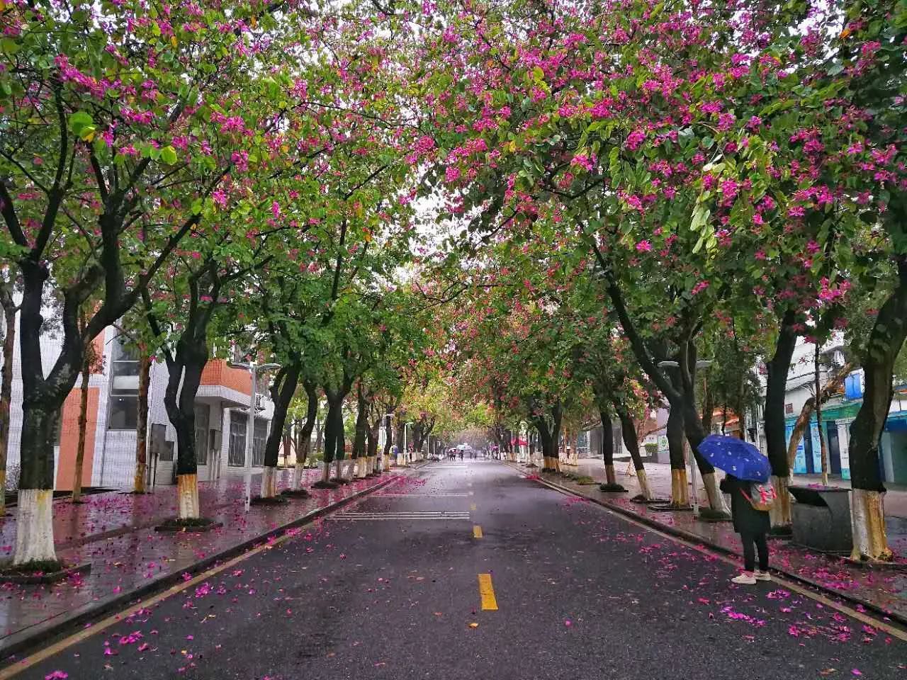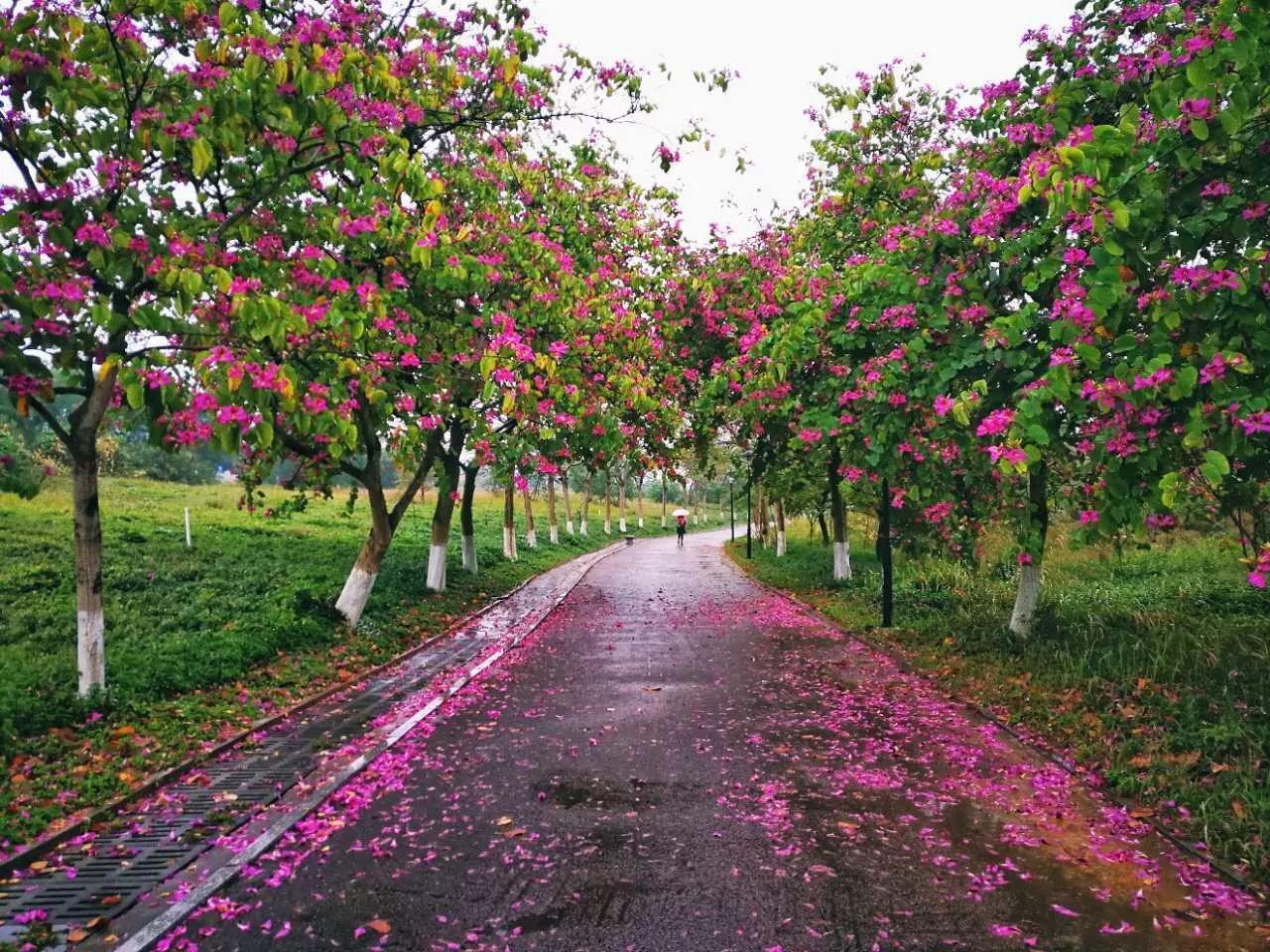 花雨满道的陪伴。