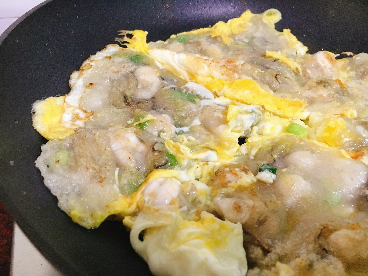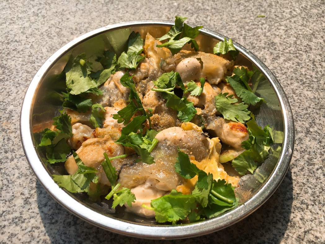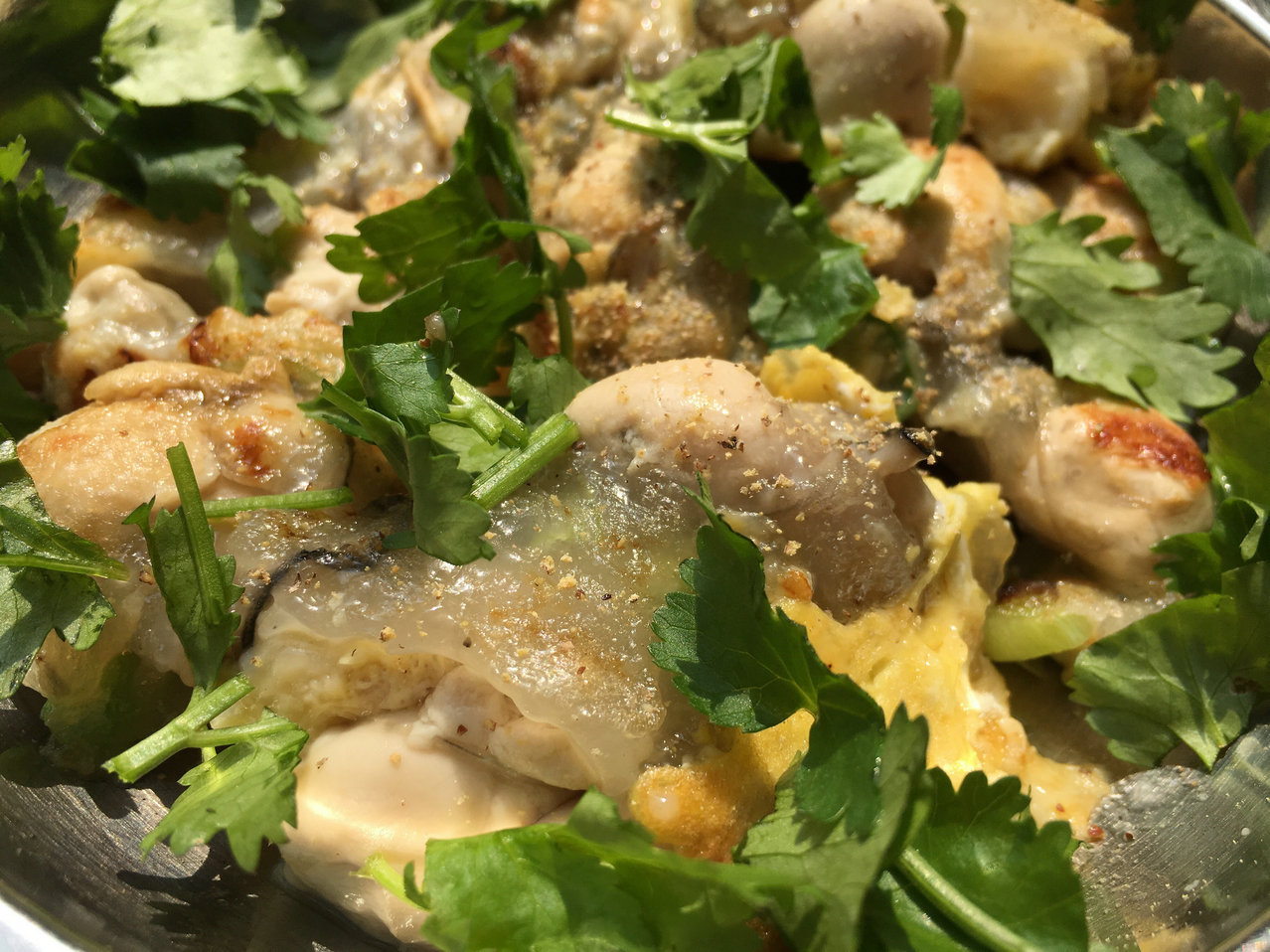 今天买了一些新鲜蚝仔,不是潮汕人的我,跟着潮汕家人学了一下,立刻下厨尝试我的第一次蚝仔烙,这次是传统版的蚝仔烙,煎到外酥里嫩,加点鱼露、胡椒粉和香菜,颇有潮汕风味,大家一致评定:成功!
