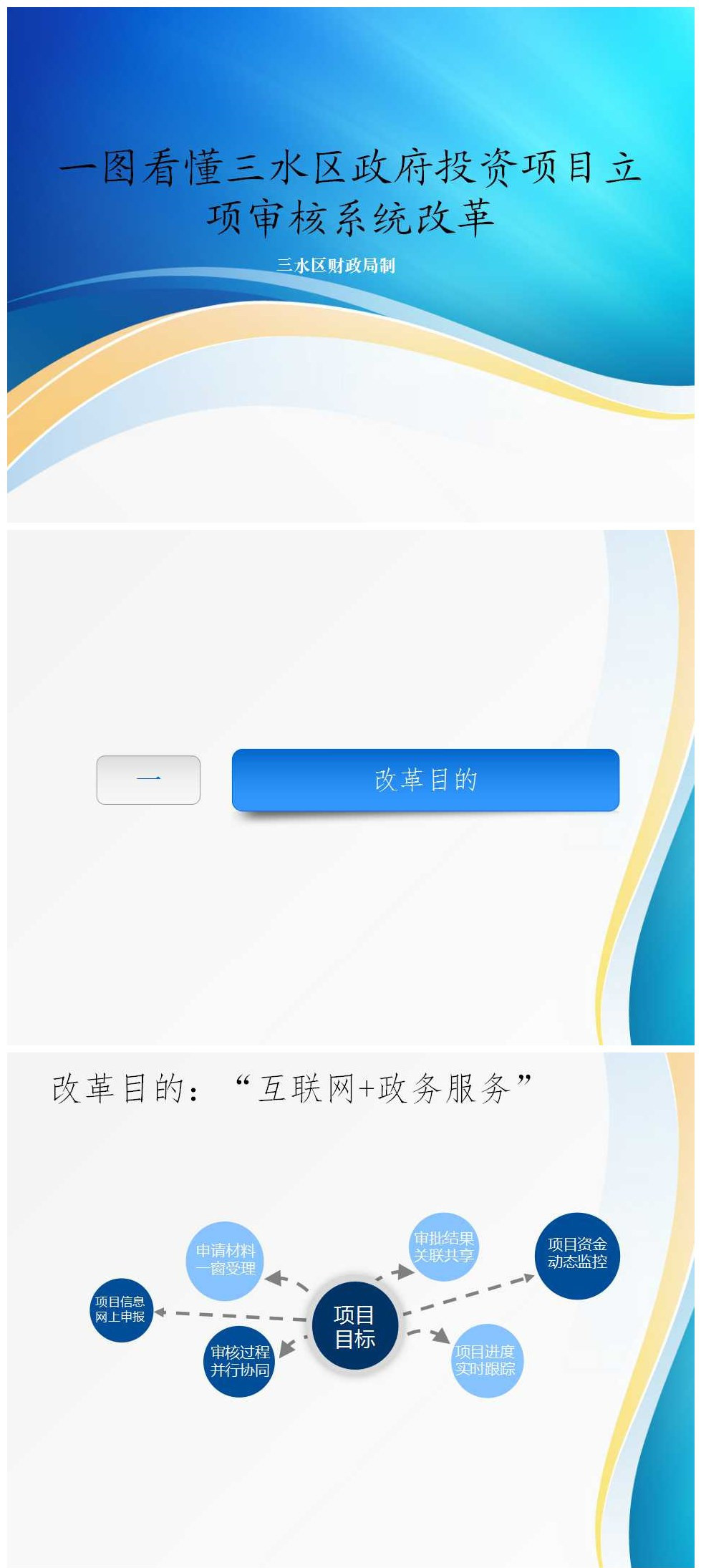 近年来,三水区全面深化“放管服”改革,不断优化营商环境,2018年伴随着“中介超市”的有力推进,吹响了三水区新一轮改革的号角。区财政局顺势而为积极响应,先后推行全面放开政府投资项目基建评审和“一次性收件,全程E审核”改革,有力提升了投资评审质效。