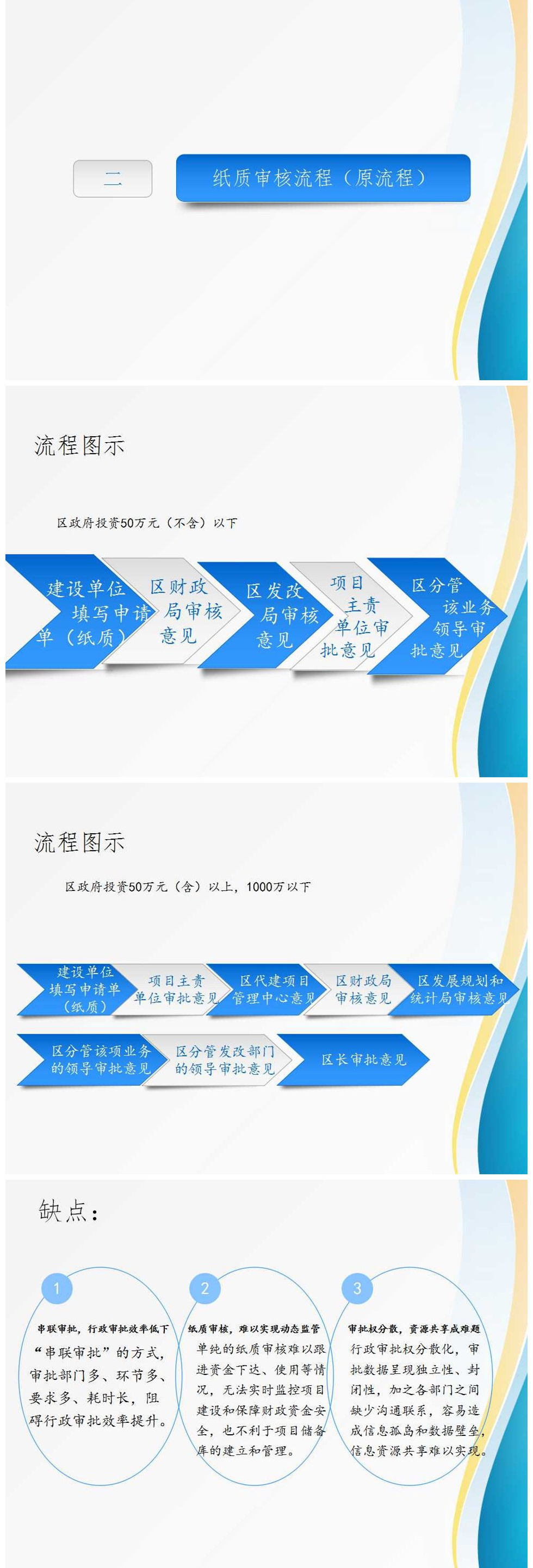 “随着投资审批制度改革的深入推进,全面建立和规范投资项目立项审核系统,对于我区深化互联网+政务服务,加强服务型政府建设,加快转变政府职能、优化营商环境具有重要意义。”从区财政局四楼会议室传来“阵阵改革新声”,政府投资项目立项审核系统的上线培训正在举行,标志着该系统正式上线!该系统的搭建将过去政府投资项目的“串联”式审批的纸质模式升级为“并联”式审批的信息化模式,通过系统优化和流程再造,实现让“数据多跑路,审核再提速”。