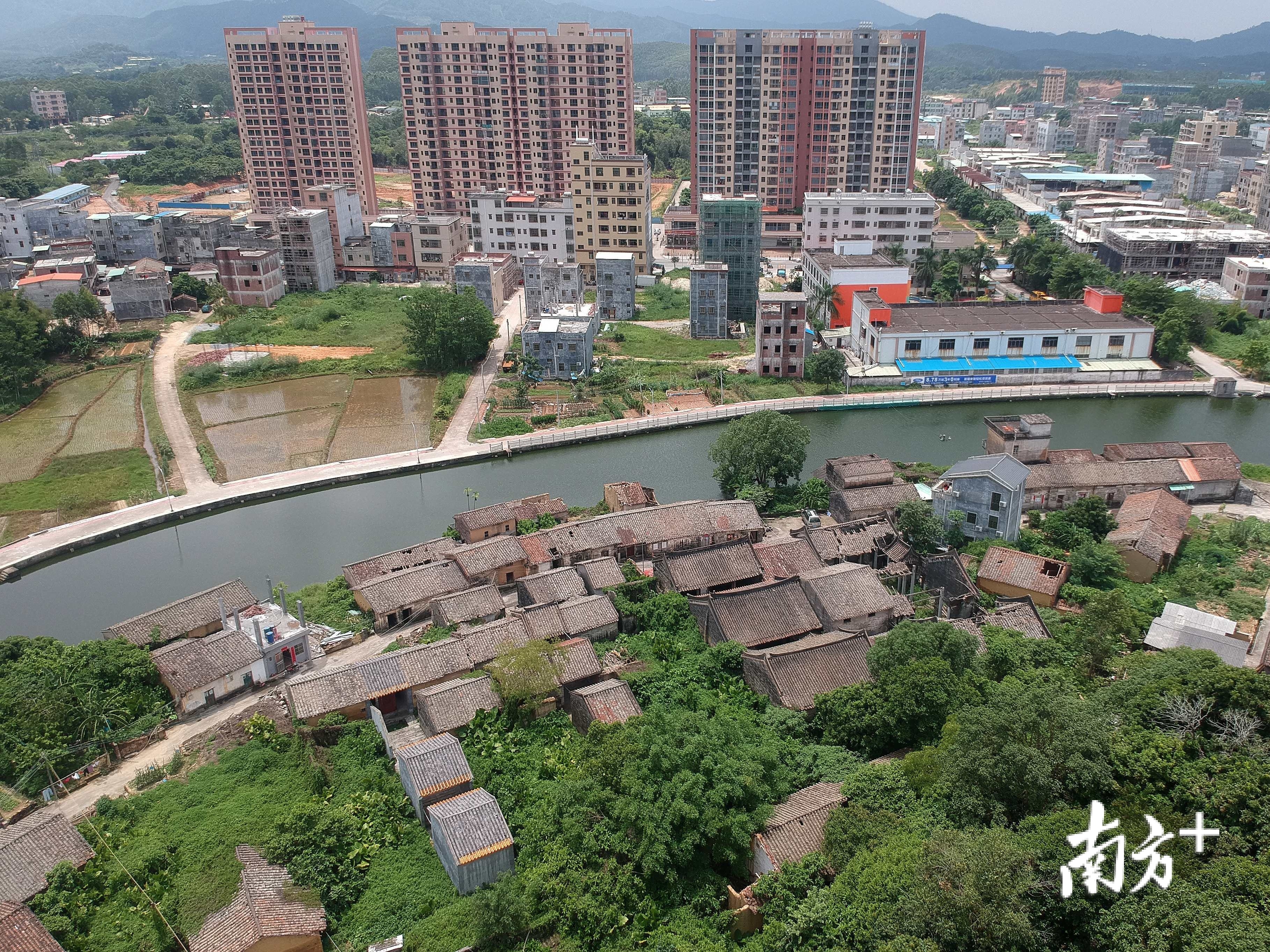 与湖镇围隔水相望的,是一片新建的高楼。任凭时代转变势不可挡,湖镇围始终安静地待在这里,记录着逝去的历史,安抚着游子的乡愁。