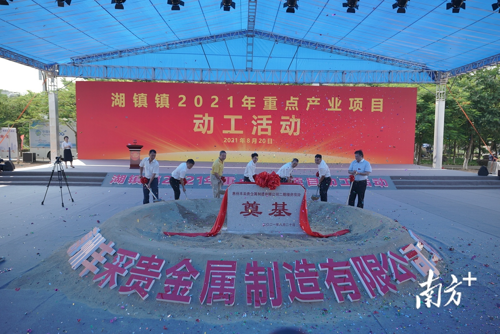 8月20日上午,博罗县湖镇镇举行2021年重点产业项目动工活动。惠州丰采贵金属制造有限公司二期增资扩产项目正式动工,为湖镇打造“工业强镇”注入新动能。博罗县委副书记、县长邱志彪,副县长北如等以及相关企业代表参加活动。