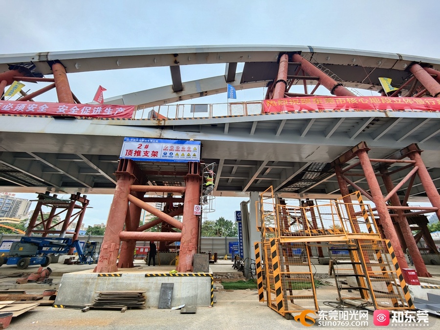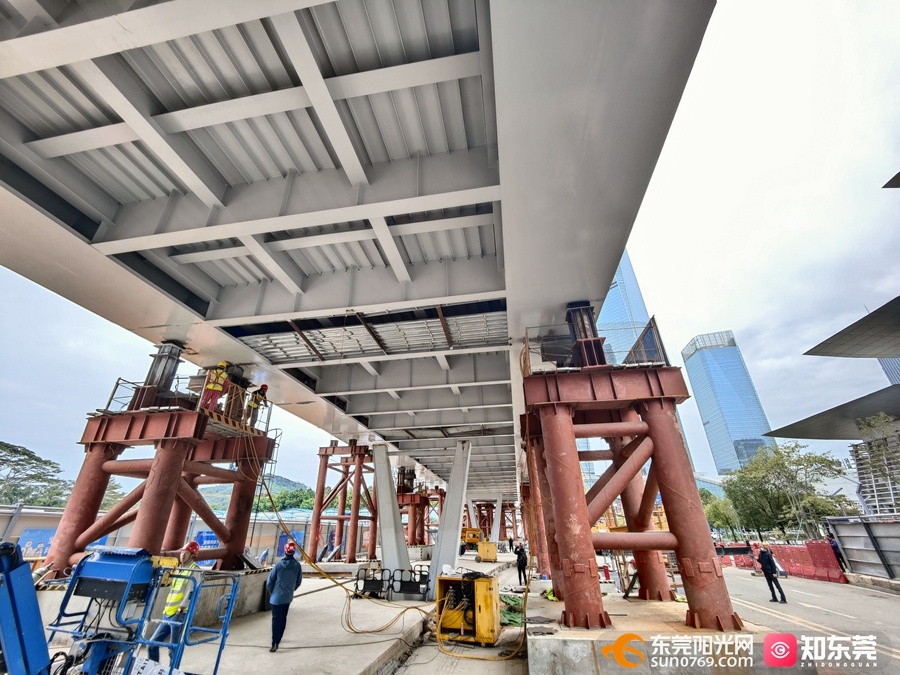 “‘顶推法’施工设备简单,施工平稳,噪声低,并且不需要中断交通,可以最大限度减小对东莞大道行车安全的影响。整个过程采用全程计算机控制,多点顶推,压力调节,避免支墩受到较大集中载荷和单个顶升油缸受到偏载。”项目经理黄得生现场向记者介绍。