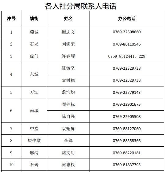 东莞市人力资源和社会保障局人力资源流动管理科21668216,22836692