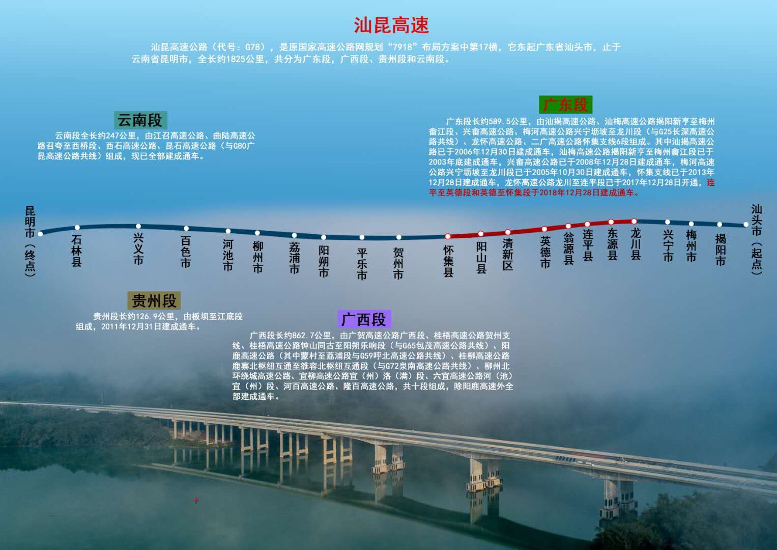 12月28日上午11点,汕(头)昆(明)高速连平至怀集段、武(汉)深(圳)高速仁化至博罗段二期同时通车。至此,汕昆高速广东段、武深高速全线宣告拉通。