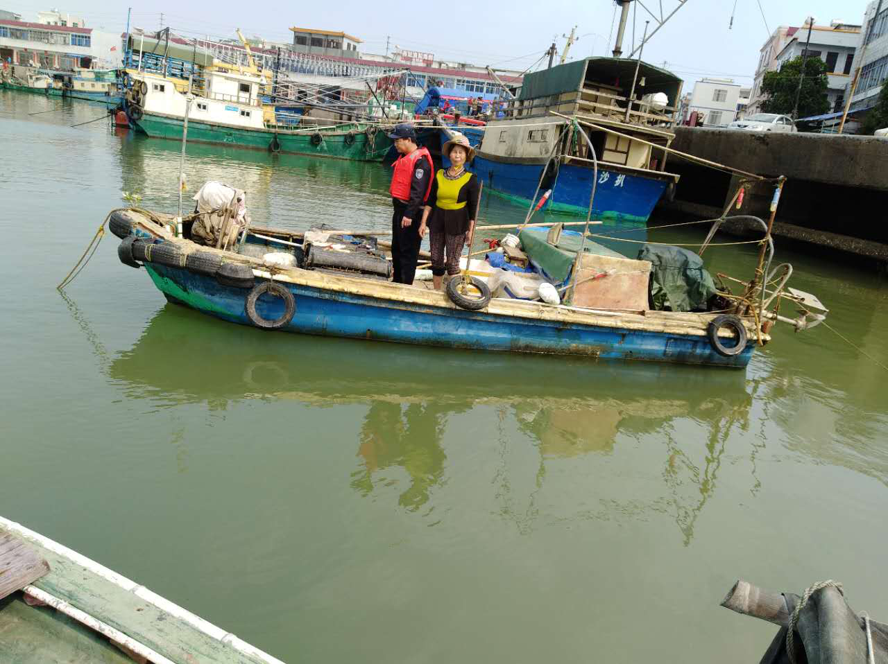 情况紧急,陈永锋立刻进行协调,停泊在码头的较大吨位渔船粤阳西渔23218马上出发参与搜救。22时,搜救人员在竹洲岛附近海域成功将遇险的两名渔民救上大船并将小船拖回沙扒渔港。
