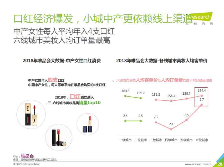 美容消费方面,“口红经济”是典型现象之一,《报告》显示,2018年唯品会中产女性用户平均每人每年购买4支口红,且口红首次进入到三至六线城市美妆品类销量Top10;六线城市的美妆人均客单价与人均订单量均高于其他线级城市。特别是美容仪作为在一二线城市率先火爆的单品,开始在下沉市场风靡,2018年购买用户数增长明显超过一二线城市,宁波市的销量增长超过3倍。