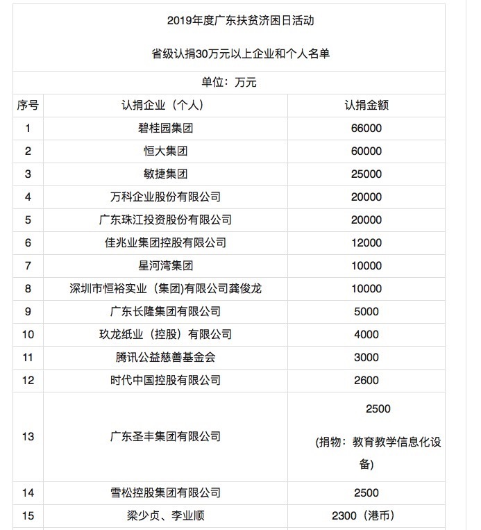 根据《广东扶贫济困红棉杯认定办法(暂行)》《广东扶贫济困日活动办公室关于开展2018年度广东扶贫济困红棉杯认定工作的通知》等文件规定,经推荐(自荐)、评审、公示和认定等程序,省扶贫开发领导小组决定,向2018年广东扶贫济困日活动慷慨解囊的336个单位和个人授予广东扶贫济困红棉杯奖杯并颁发证书。其中,授予碧桂园控股有限公司、恒大集团、龚俊龙等56个单位和个人广东扶贫济困红棉杯金杯;授予金发科技股份有限公司、海南乾润实业有限公司等15个单位广东扶贫济困红棉杯银杯;授予中国石化销售有限公司广东石油分公司、岭南生态文旅股份有限公司、李国辉等265个单位和个人广东扶贫济困红棉杯铜杯(具体名单附后),现予以通报表扬。