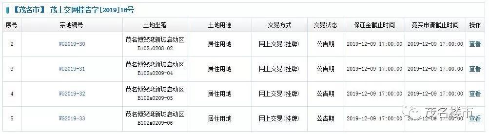 (三)宗地编号:WG2019-32;宗地坐落:茂名博贺湾新城启动区 B102a0209-05;宗地面积:7029.50 平方米;土地用途:住宅(仅用于建设棚户区改造工程项目,不得开发商品住宅);出让年限:70 年;容积率≤3.0;建筑密度≤30%;绿地率≥35%;建筑高度≤100 米(详见茂滨海规条字〔2019〕06 号);网上挂牌起始价为 1258.28 万元;竞买保证金为 380 万元;增价幅度为50万元;资信证明:1260 万元;土地估价报告备案号:4429519BA0189。