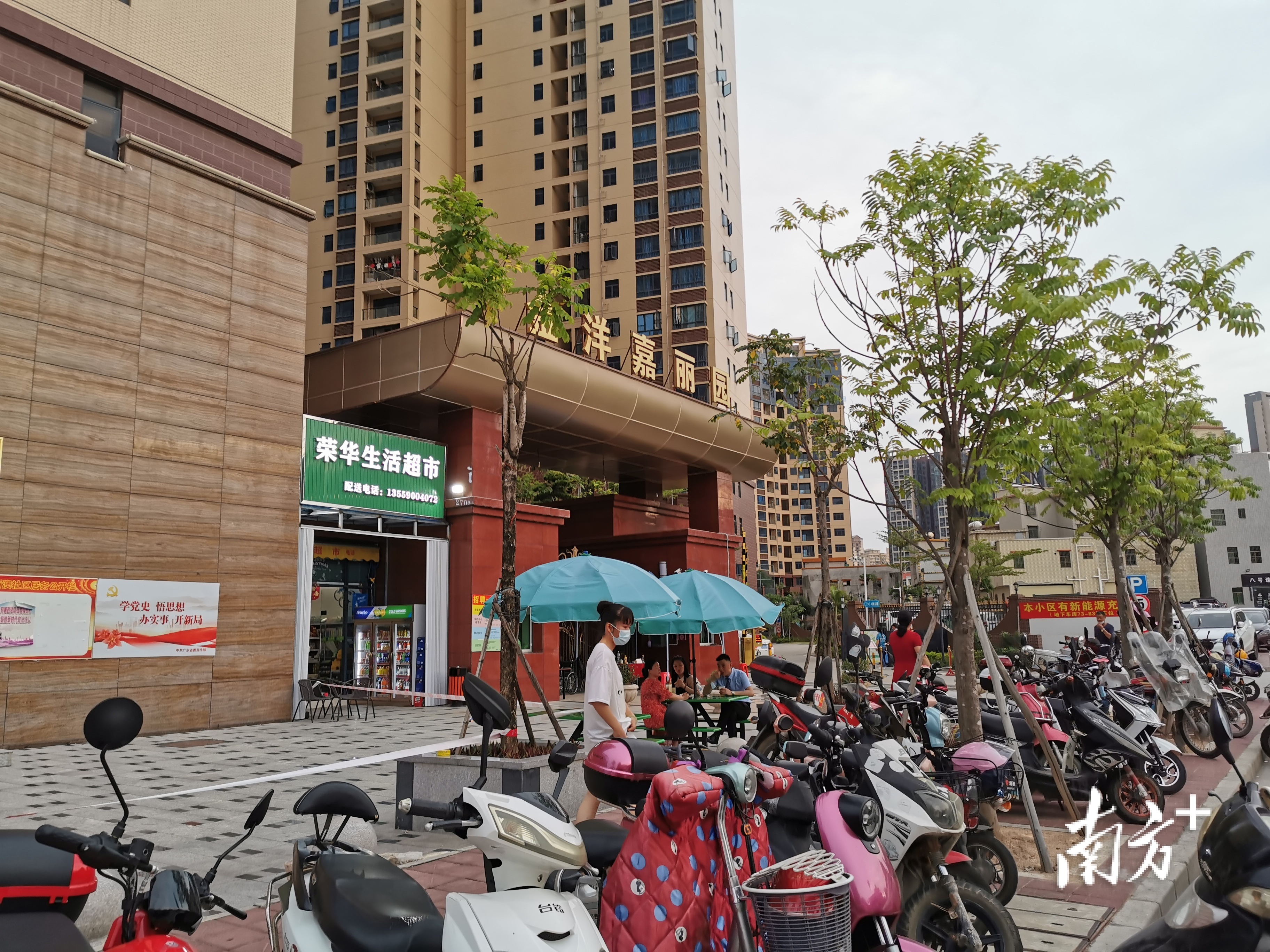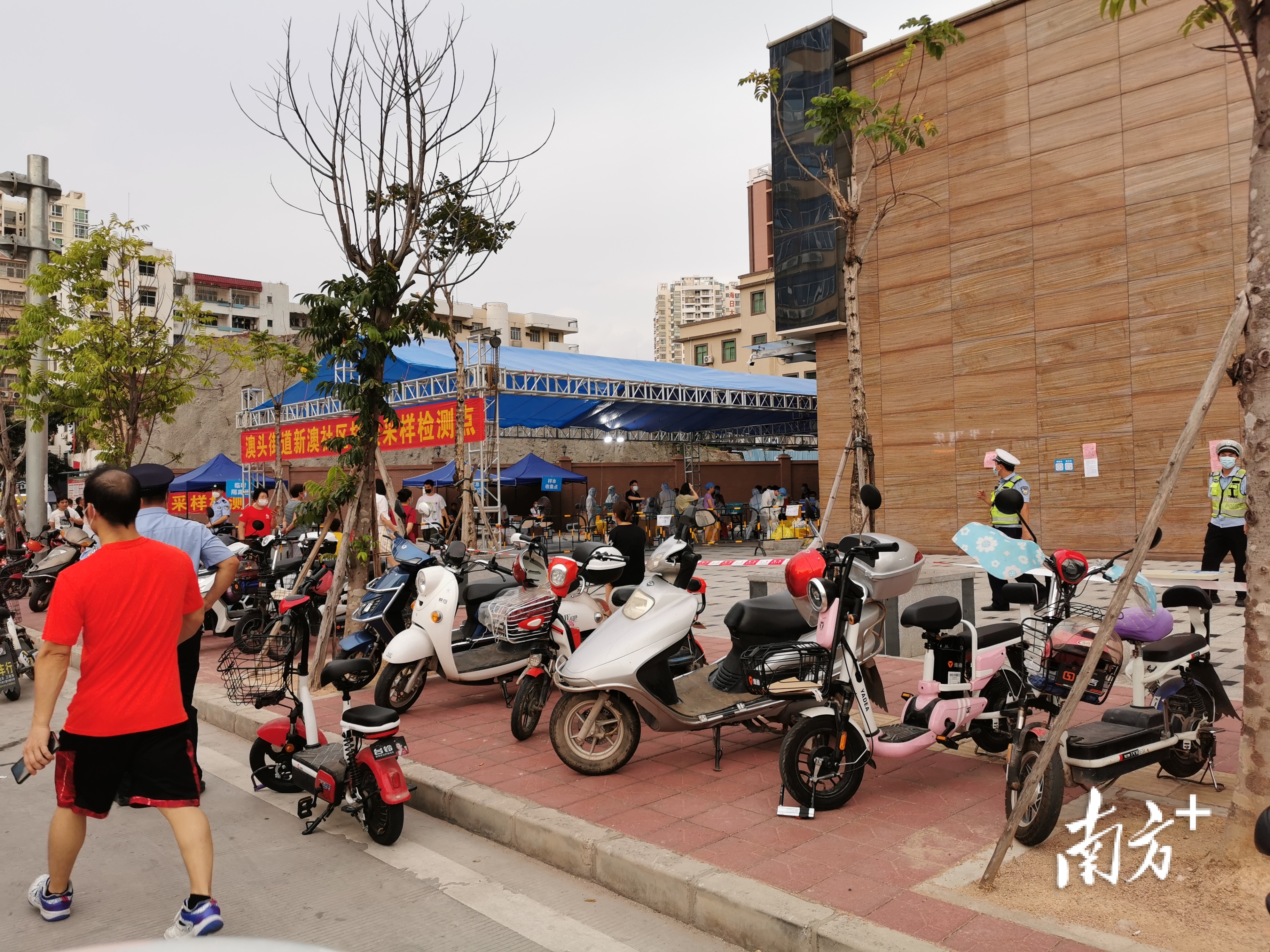 南方日报、南方+记者注意到,相较于海惠、永盛等社区以物业社区为主,新澳社区范围内有较多的农民房和出租屋。检测点外的路沿停满了电动车。辖区内的居民积极响应政府号召,前来排队进行核酸检测。