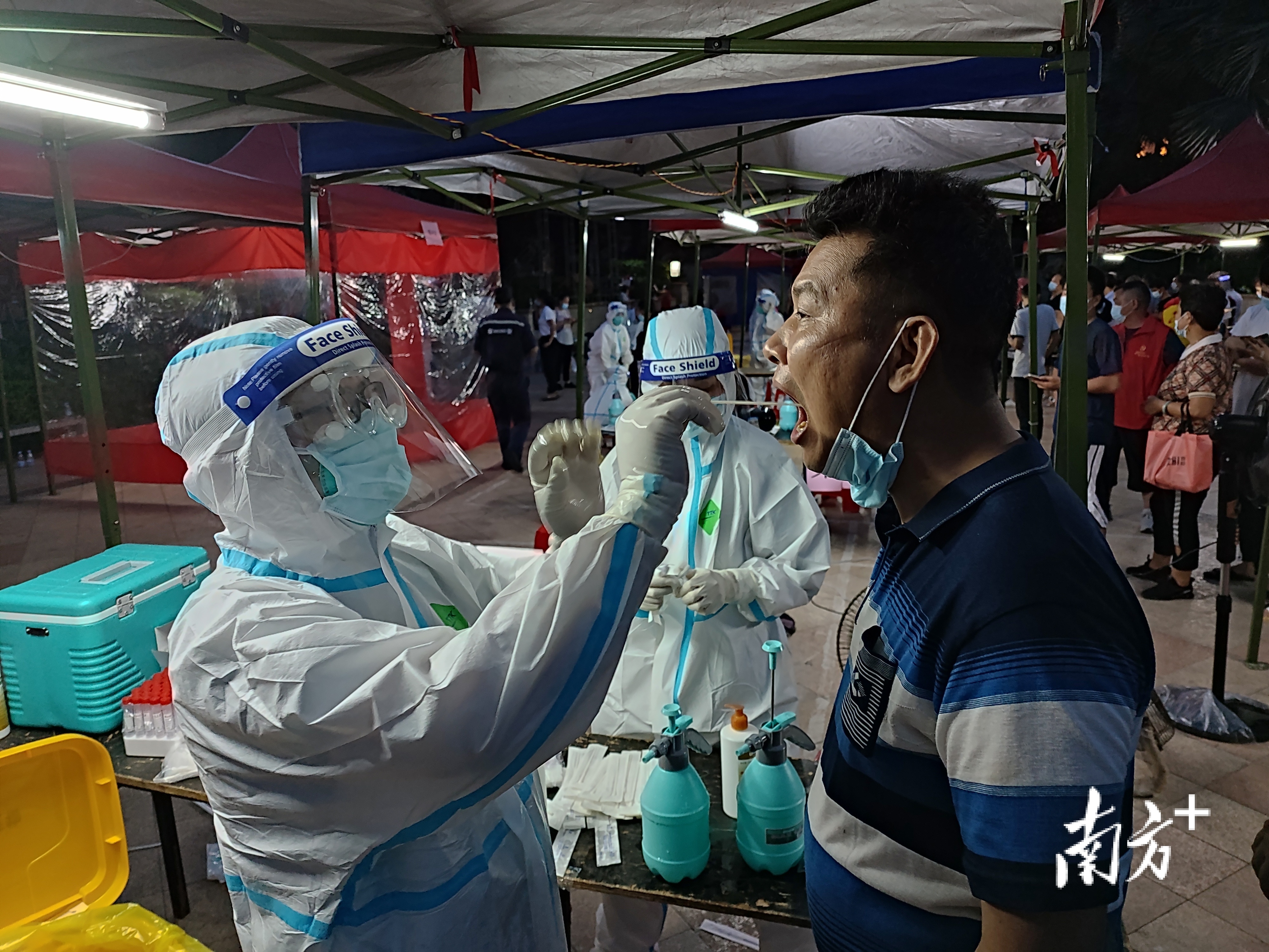 30日21:40,夜深了,广州中医药大学惠州医院医务人员仍在为市民做核酸采样。