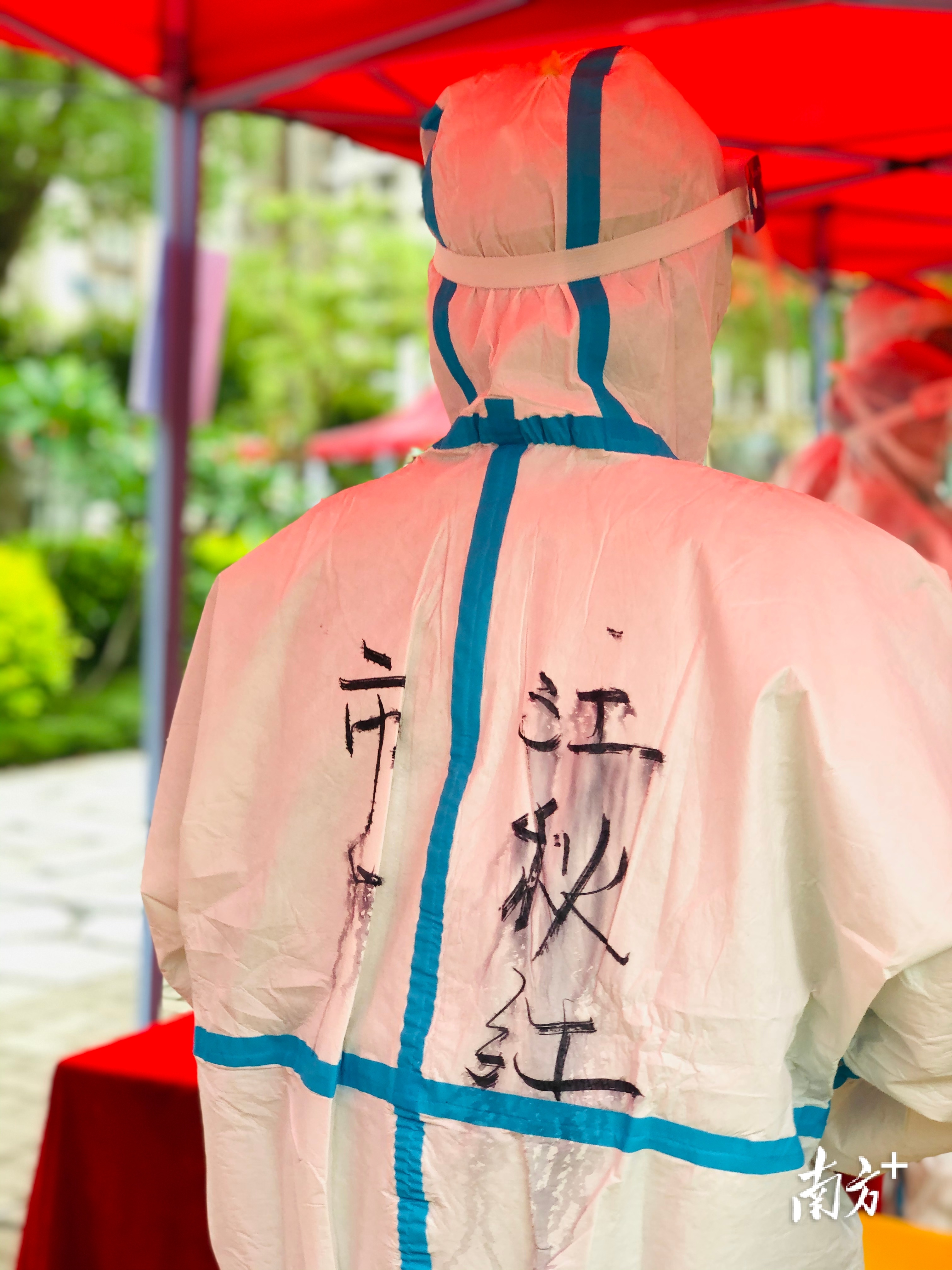 因为出了太多的汗,惠州市第一人民医院一名医务人员防护服上写的名字已被晕染。