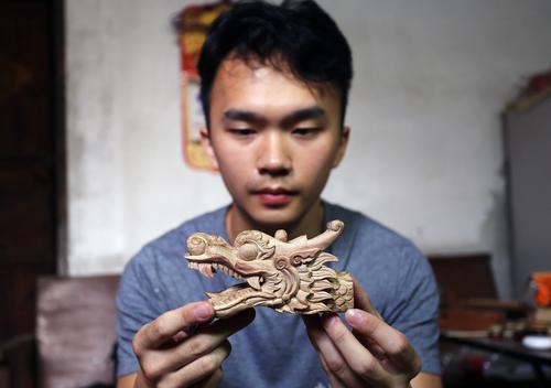 真的爱一样东西,就会把它当作一种享受,陈泳旭就是这样。雕刻龙头,他乐在其中。因为对传统文化的热爱,他还加入了一个叫“莞壹麒麟醒狮团”的民间组织,团体里都是20岁左右的年轻人,除了到各地去舞狮舞麒麟,还和队友们到各地去划龙舟,一起交流龙舟文化。