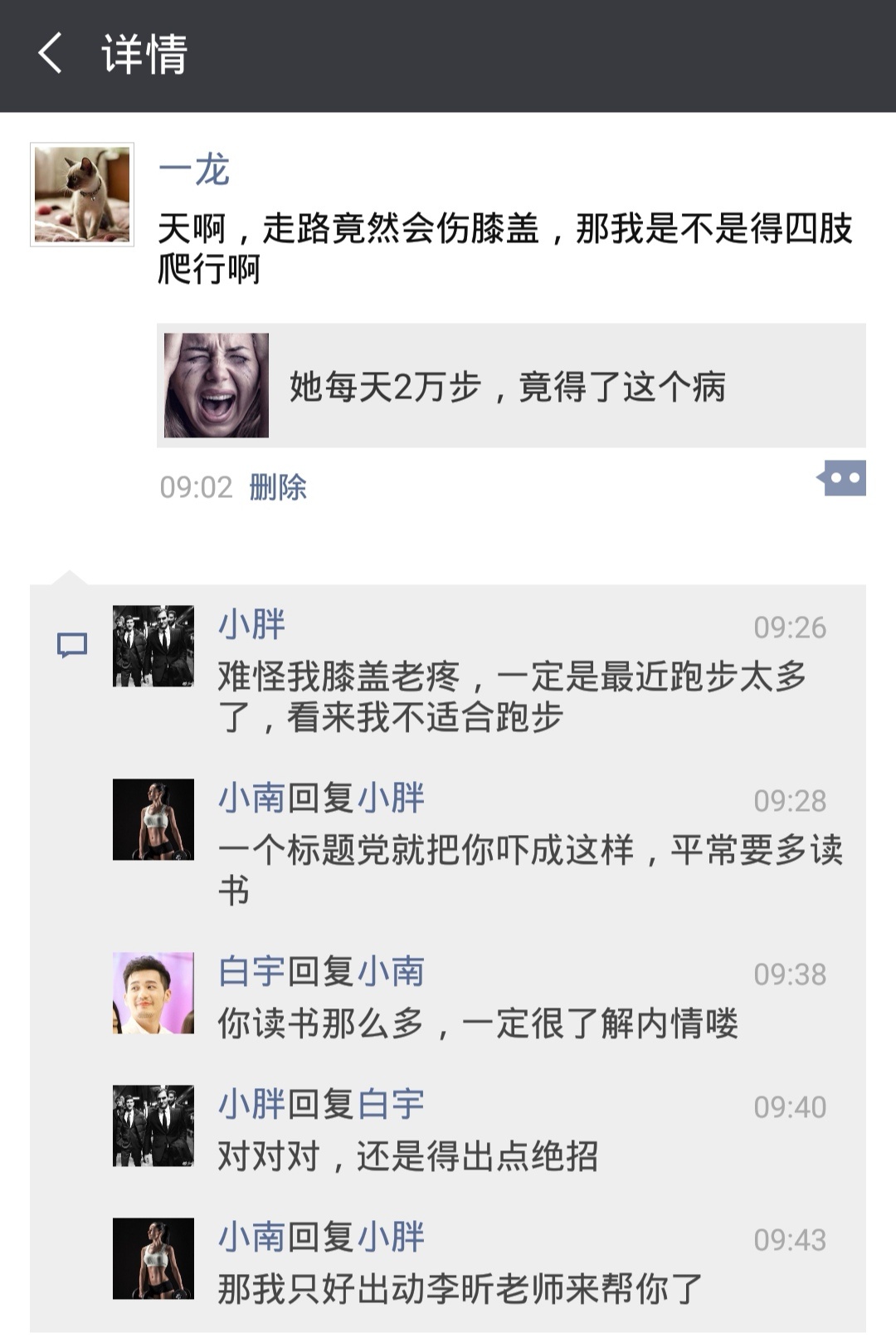 简单讲,别把膝疼不当病,如果出现任何的疼痛,特别是逐渐发生的疼痛,尽早寻求专业的运动医学康复医师进行检查处理。造成膝盖疼痛的原因也很多,科学健身一分钟节目会在未来为大家慢慢讲解。