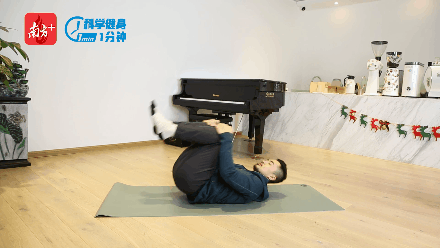动作要点:这个动作有利于放松背部,最好在硬一点的地面完成。请注意:这不是一个床上运动,不要在床上滚哦,很容易受伤。