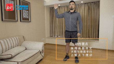 动作要点:想象自己的手臂是个钟摆,放松地前后摆动以及左右摆动。