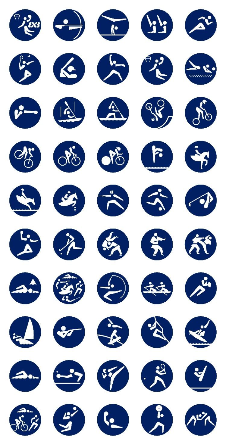 奥运会运动项目图标始于1964年的东京奥运会。2020年东京奥运会的运动项目图标是由日本著名设计师广村正彰带领其团队参与设计的。他说:“能够参与2020年东京奥运会运动图标的设计,我感到非常荣幸。我们试图用这些图标来表现运动员的动态之美。”