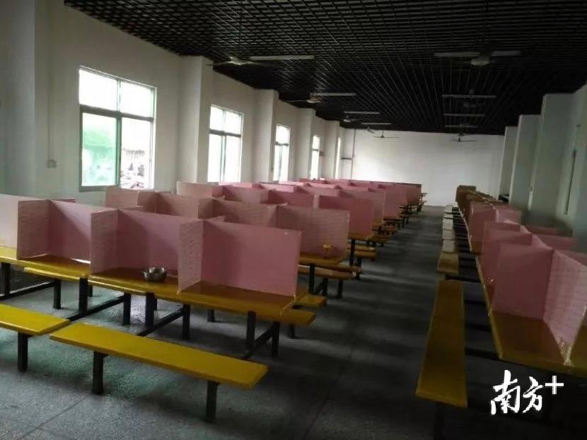 格尔翰汽车配件(东莞)有限公司等企业为减少员工聚集带来交叉感染等风险,除要求员工必须自带餐具用餐之外,还在食堂内的每张餐饮桌中间安装多层透明塑胶膜制成的屏风,并将餐饮桌的六人座设置成四人座,确保在疫情防控期间为员工提供一个卫生、安全、舒适的生活环境。