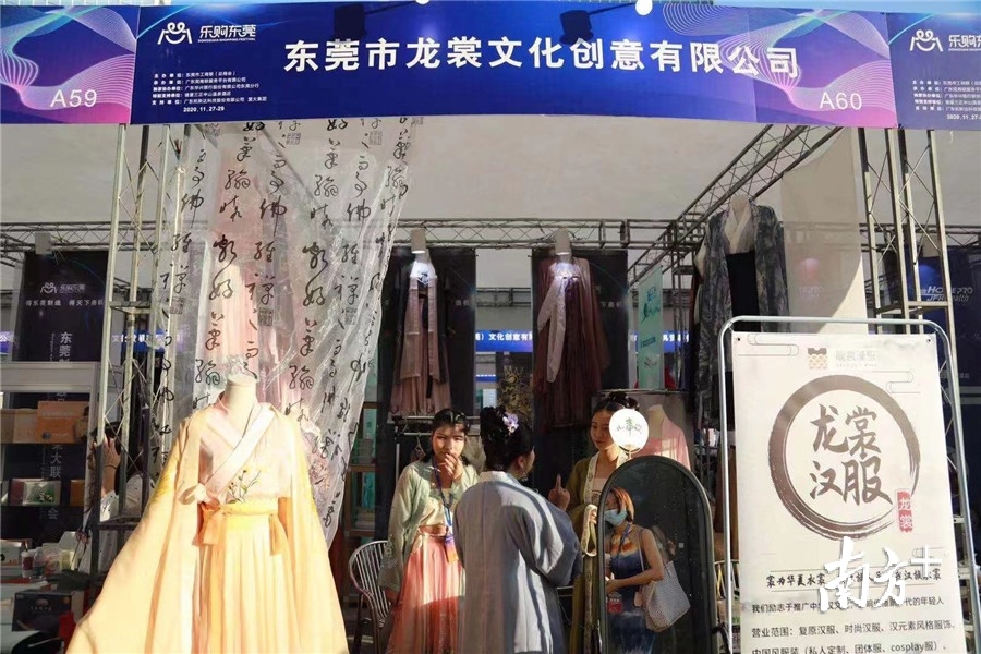 东莞市龙裳文化创意有限公司总经理袁梦瑶说,我们今天带来了汉服和汉元素服饰,这是我们的主打产品。在展会中,我们结识了国内一些园区、景区的采购商,双方在探讨一些汉服元素的落地产品,目前还在进一步洽谈中,希望彼此能达成合作。非常感谢市工商联(总商会)为我们搭建的平台,让我们可以与采购商深入交流和对接,借此展会可以更好地打响企业品牌,展示我们产品的工艺和设计。
