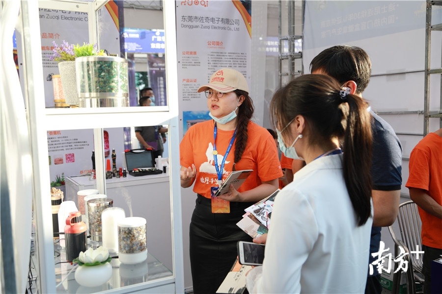 据介绍,参展的300家东莞制造企业涵盖消费类电子、时尚用品、化妆品、宠物用品、食品饮料、办公文具、文创产品、家居用品等领域。在展会现场,记者看到琳琅满目的东莞制造——在食品类,有承接传统和创新的佳佳美粽子、有陪伴东莞人近30年的华美食品;在服装类,有玩转城市+户外的山水乐人的冲锋衣,有融合传统和现代元素的龙裳的汉服;在家居领域,有芬璐的爆款乳胶枕头,也有闻名遐迩的慕思床垫;在包装印刷领域,有为故宫文创和奥利奥生产包装盒的精丽公司,也有连续为三届奥运会、四届冬奥会、三届世界杯等国际赛事设计纪念品包装盒的铭丰包装;在家电领域,有高速智能无叶吹风机、水基因石墨烯烧水壶、智能机器人、日本进口美白洁牙按摩仪等黑科技产品、网红产品……