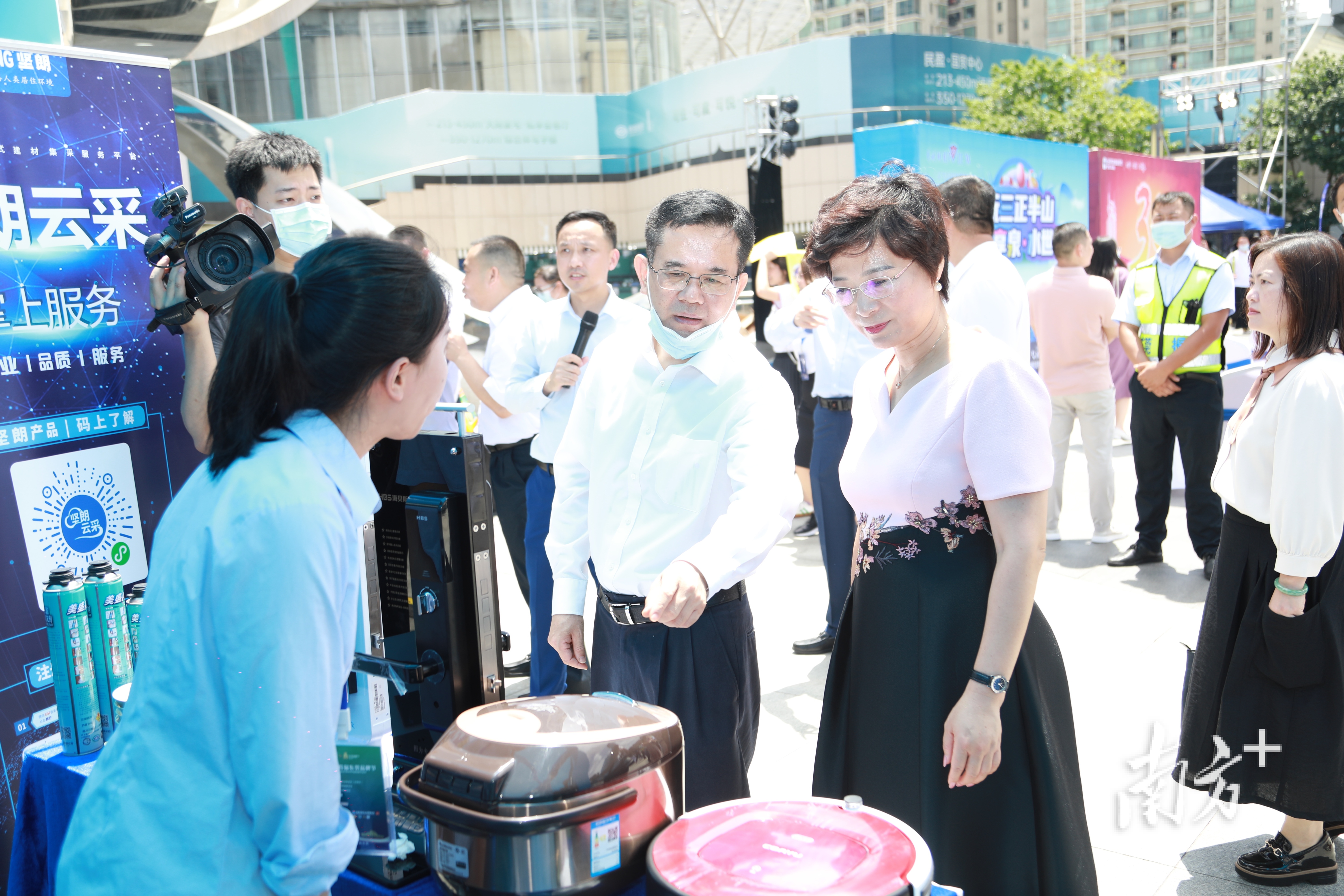 展会上特别设置了直播现场,邀请企业高管为自家的东莞品牌带货。在南方+直播间上,马可波罗瓷砖工程事业二部副总经理黄新金、唯美集团营销中心市场部品牌传播与公关部总监李军林化身为“网红”为自家的马可波罗瓷砖直播“带货”。