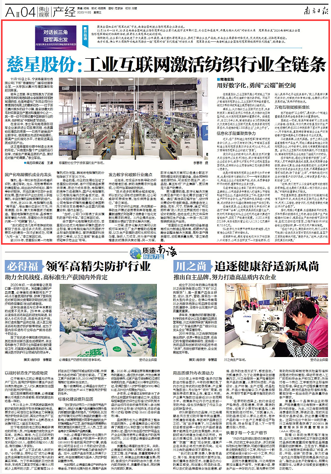 在慈星股份,工业互联网是公司赋能上下游的利器,也是公司创造新价值的杀手锏。而在不少南海隐形冠军企业,工业互联网同样备受重视,被视为帮助传统制造业提质增效的必备武功。