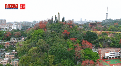 越秀山麓木棉树纷纷开花,红绿相间,壮观美丽。越秀山是古代的海上战略要地,山顶上建有镇海楼,为广州的城市标志之一。