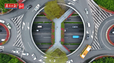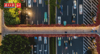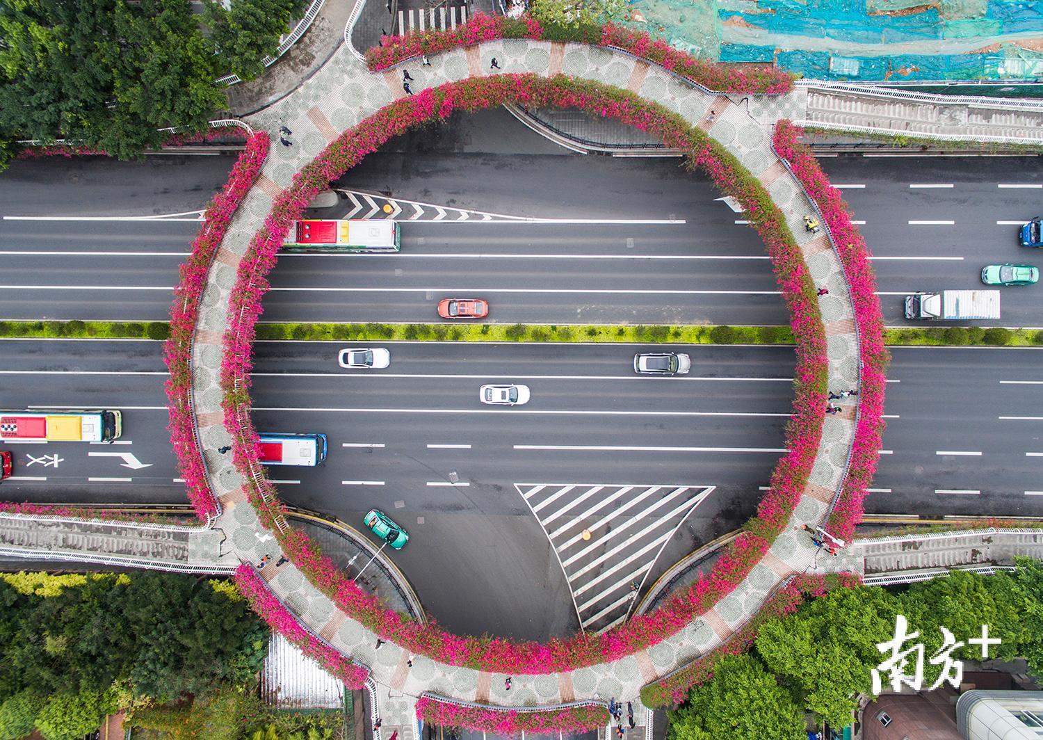 东风东路的天桥,绽放的簕杜鹃好像一个红圈。