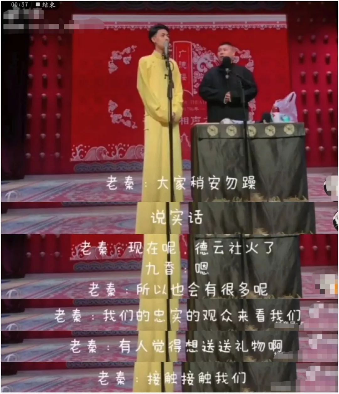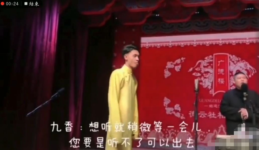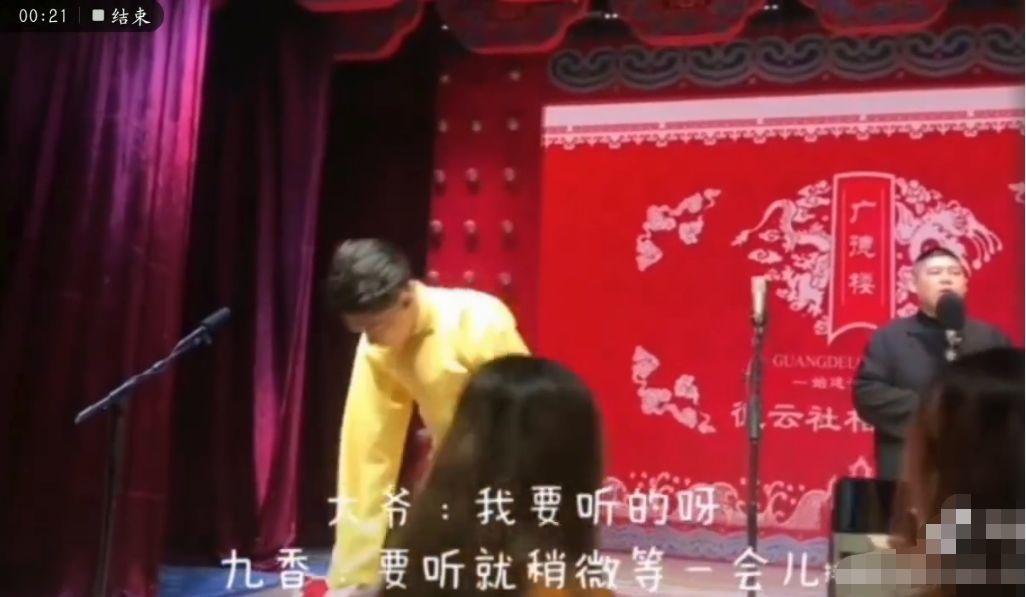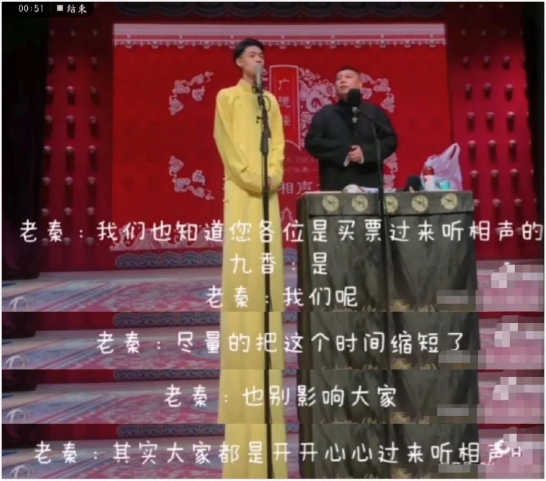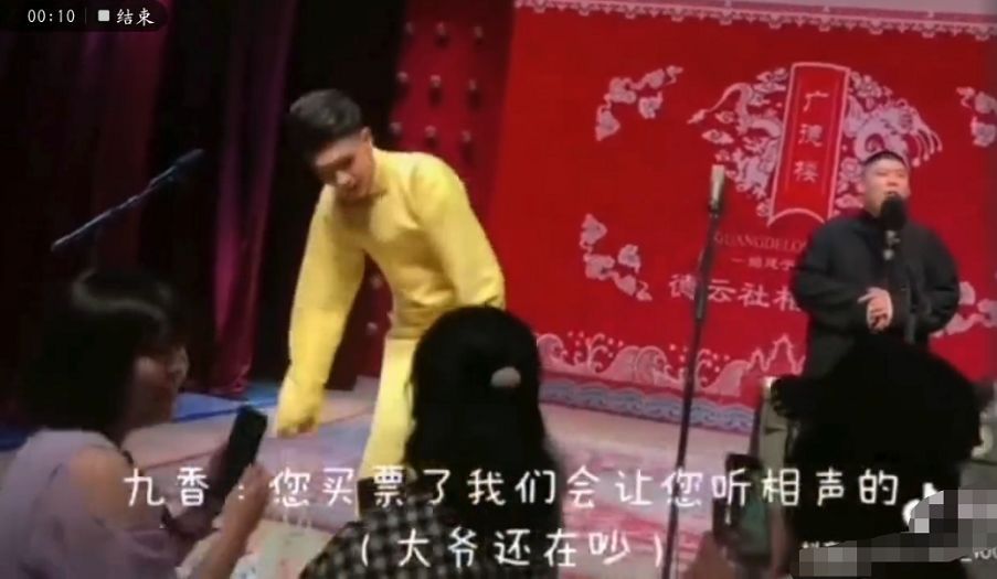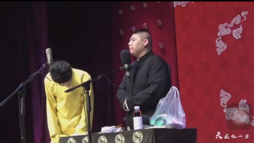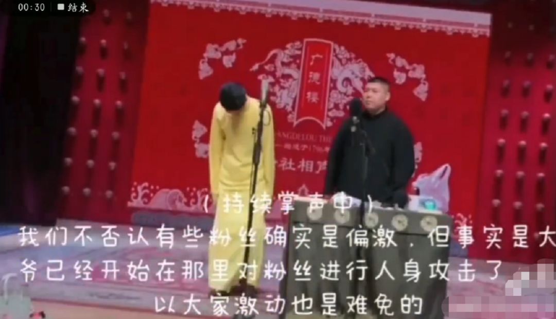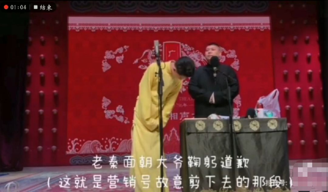 最后还面向催促他们的大爷,鞠躬道歉,才开始正式的相声表演。