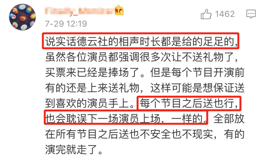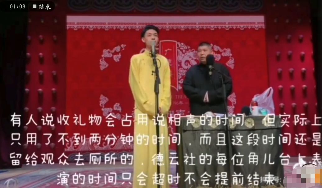 德云社演员从来没因为收礼物耽误表演时间,他们也已经在尽可能减少收礼物了,只是还无法做到完全杜绝。