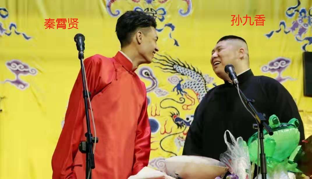 视频一开始,就是女粉丝们排着队送礼,逗哏秦霄贤在舞台边缘收粉丝礼物,捧哏孙九香在舞台上收拾桌面。
