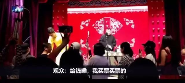 这时候,一个大爷似乎并不习惯演员们表演前收礼物的习惯,大声催促,“赶紧讲呀,我买了票的。”