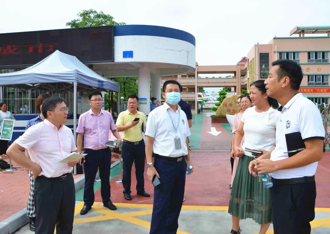 在良都小学,谢军杰一行视察了学校的校园环境,详细了解学校新学期开学情况,并就学校扩建工作进行现场办公,及时协调解决在扩建中遇到的困难和问题。