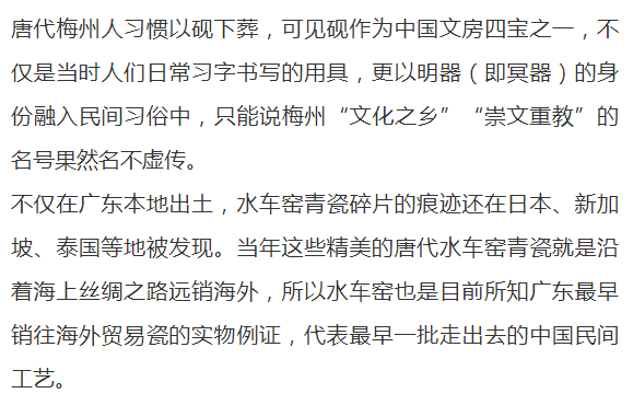 梅州市梅县区博物馆原馆长朱迪光:“严格地说,我们不能说水车窑的技艺失传了,因为从目前的考古发掘,只能说只发现了水车窑唐代晚期的窑址。因为任何事物都有一个产生、发展、演变的过程,就水车窑而言,它不可能出现在晚唐的时候就那么成熟,技术那么高,而且生产器物也非常丰富。只能说到目前为止,发现了晚唐的遗址,那么对水车窑的研究有待今后考古新发现,才能说明它的历史问题。”