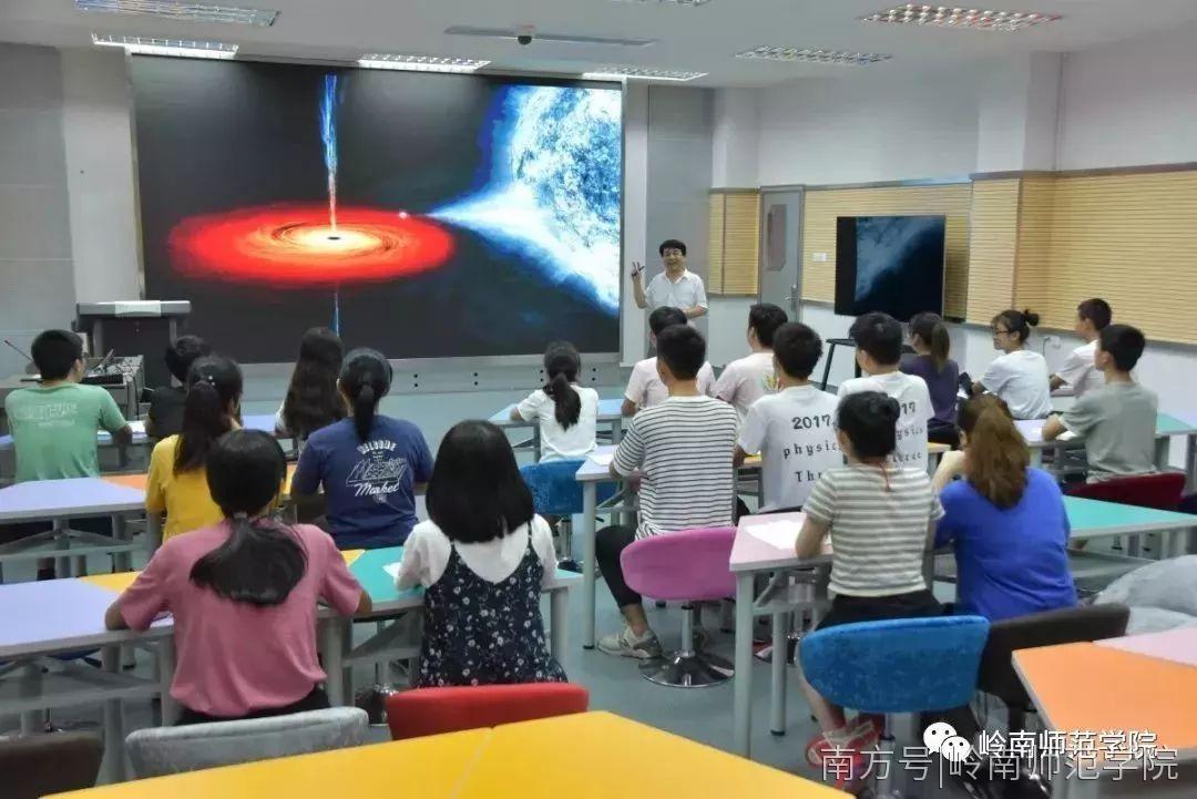 近日,在岭南师范学院未来教育空间站的多媒体教室里,一场以“黑洞”为主题的天体物理讲座吸引了广大师生的关注。学校天体物理科研创新团队的李固强教授,正在大屏幕上给大家展示今年4月10日全球首次发布的“黑洞”照片,循循善诱为大家讲解天体物理和“黑洞”的有关知识。