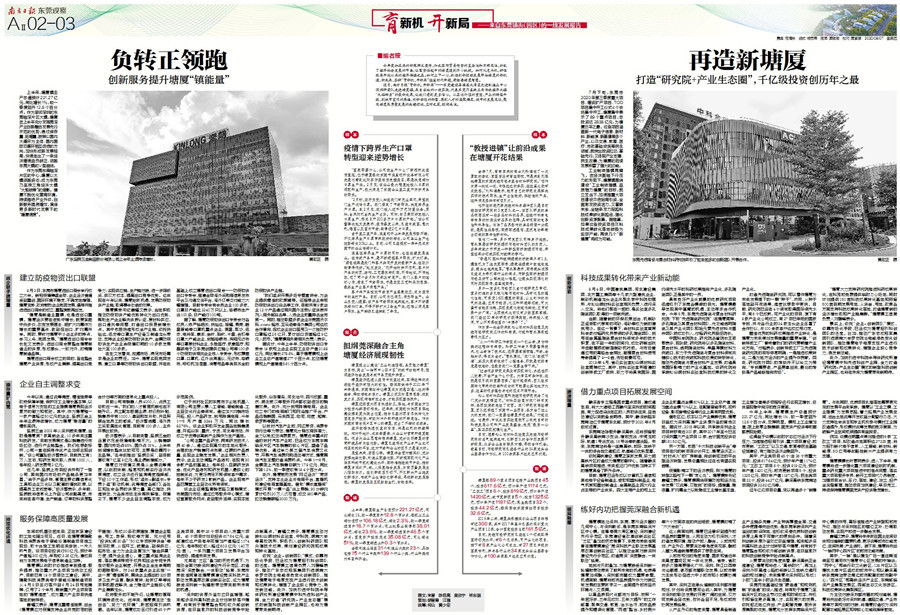 近日,南方日报“育新机,开新局”——东莞建设粤港澳大湾区先进制造业中心深调研团队走进塘厦镇,来自当地的一线实践,代表东莞乃至珠三角传统经济大镇“大船转身”的最新成果,让我们看到更多信心。从区位价值的重塑、产业的转型升级,到城市空间的再造、创新动能的积蓄,再到人才的集聚蝶变、城市的发展定位,聚焦塘厦高质量发展的关键领域、应对之策,敬请关注。