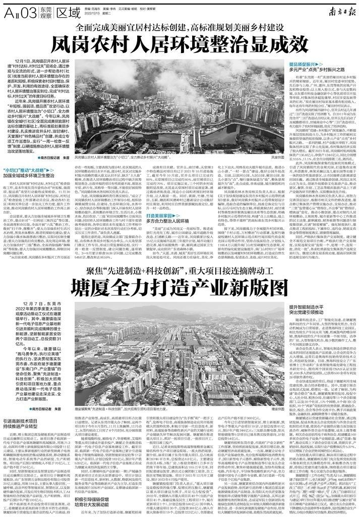 塘厦镇投促部门负责人表示,“重大项目建设是稳投资的强引擎、促增长的压舱石,塘厦镇以重大项目建设为抓手,开足马力促投资”。2022年,全镇纳入市重大项目共49个(包括产业项目41个,基础设施及民生工程项目7个,城市更新项目1个),计划总投资590亿元(其中纳入市重大建设项目30个,总投资368亿元;纳入市重大预备项目19个,总投资222亿元),全部建成达产后年产值不低于960亿元。