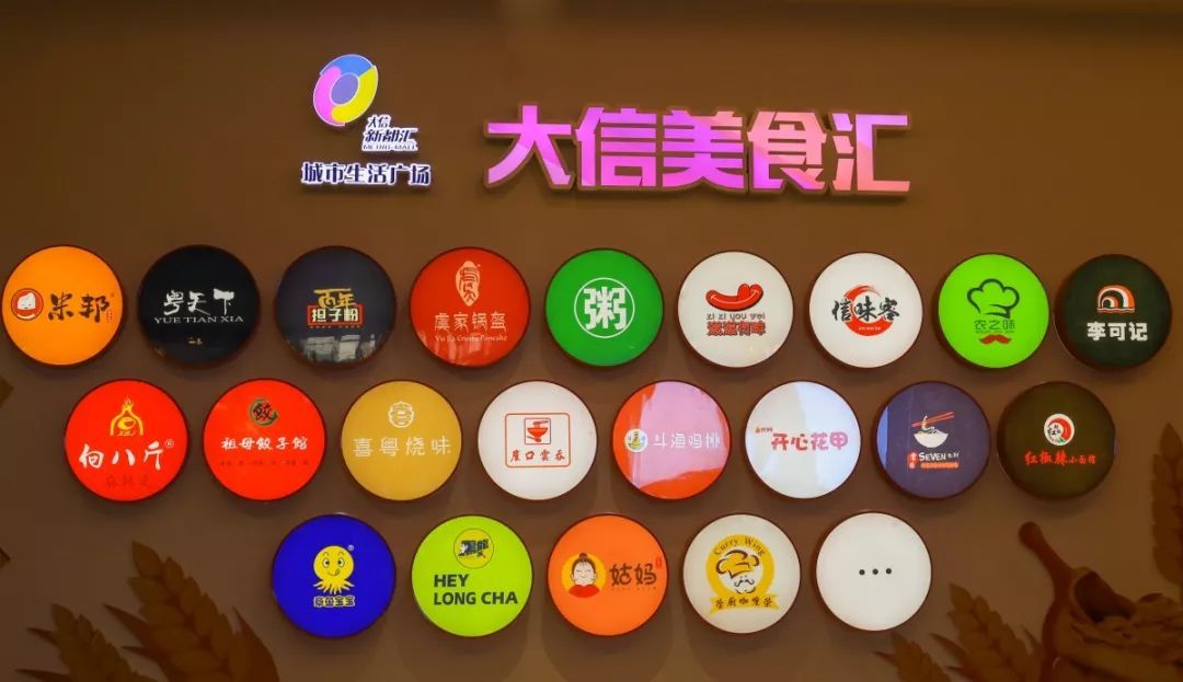 大型连锁零售企业苏宁易购、爱婴岛,知名大型连锁餐饮麦当劳、肯德基、星巴克、大家乐、信轩酒家、威尼斯西餐厅等入驻其中;5楼的大信美食汇更是探鱼、蛙小侠、炭舍等各地特色美食荟萃。