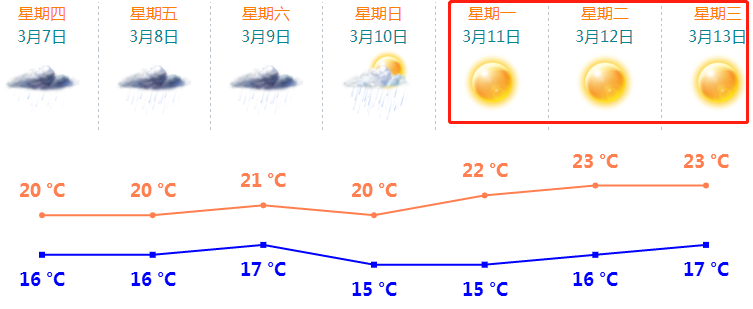 预计6-9日我市降雨频密,间中雨势较大,并伴有雷暴等强对流天气,10日白天降雨减弱,11-13日转晴好天气,气温有所下降。