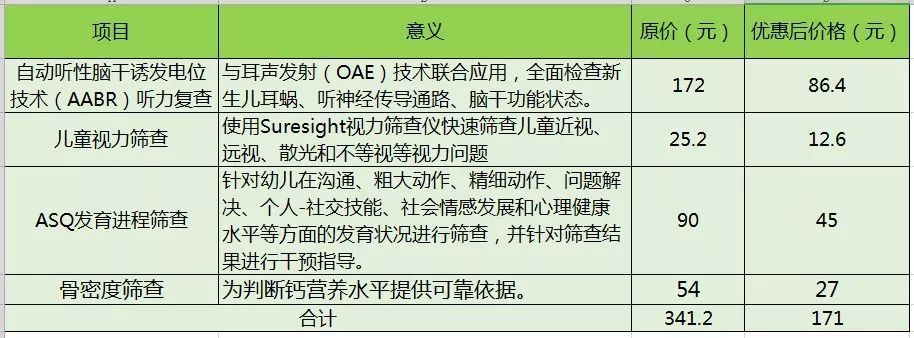 套餐一:儿童保健套餐