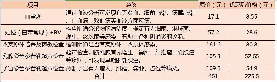 套餐二:妇女常见病(含两癌)普查优惠套餐