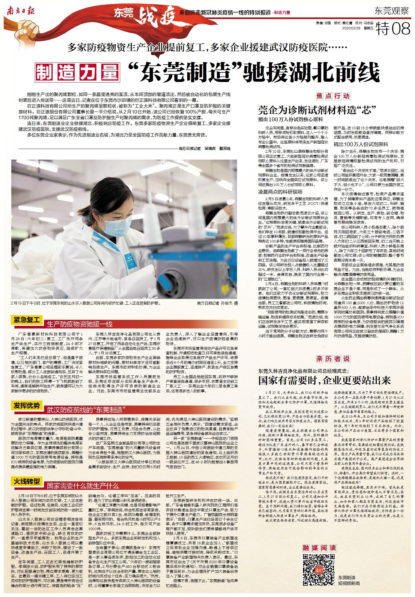 多位东莞企业家表示,作为先进制造业名城,为湖北乃至全国防疫工作贡献力量,东莞责无旁贷。