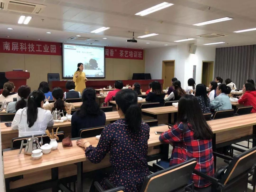 为了庆祝三八妇女节,3月6日晚,南屏科技工业园“浓情三月,品茗闻香”茶艺培训班开班,来自园区格力电器、溢多利、仕高玛、天威飞马、泰坦新动力、许继电气等33家企业40余名女职工参加了活动。