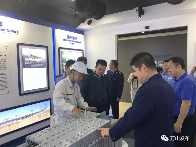 在参观完中交第四航务工程局有限公司深圳至中山跨江通道主体工程施工(S09标)项目展示厅后,王小平同志听取了项目部陈聪经理关于安全生产管理、食品采购存储加工、特种设备使用等相关内容的汇报。
