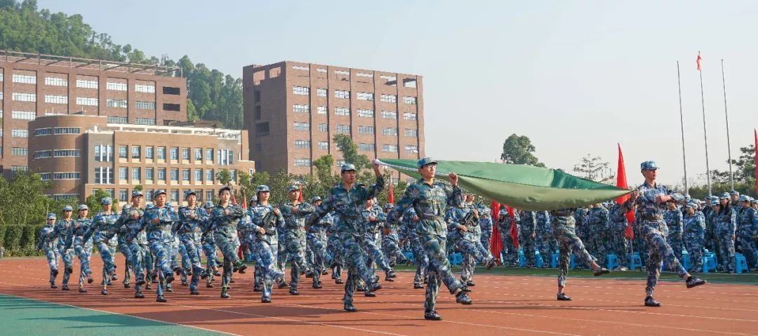 2018级学生军训汇报表演暨总结表彰大会在送校旗,奏唱校歌声中圆满结束。